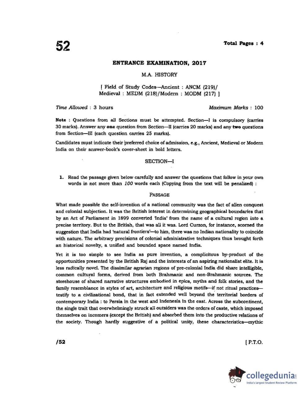JNUEE 2017 M.A History Question paper with answer key pdf is available for download. The exam was successfully organized by Jawaharlal Nehru University (JNU). The question paper comprised a total of 19 questions.