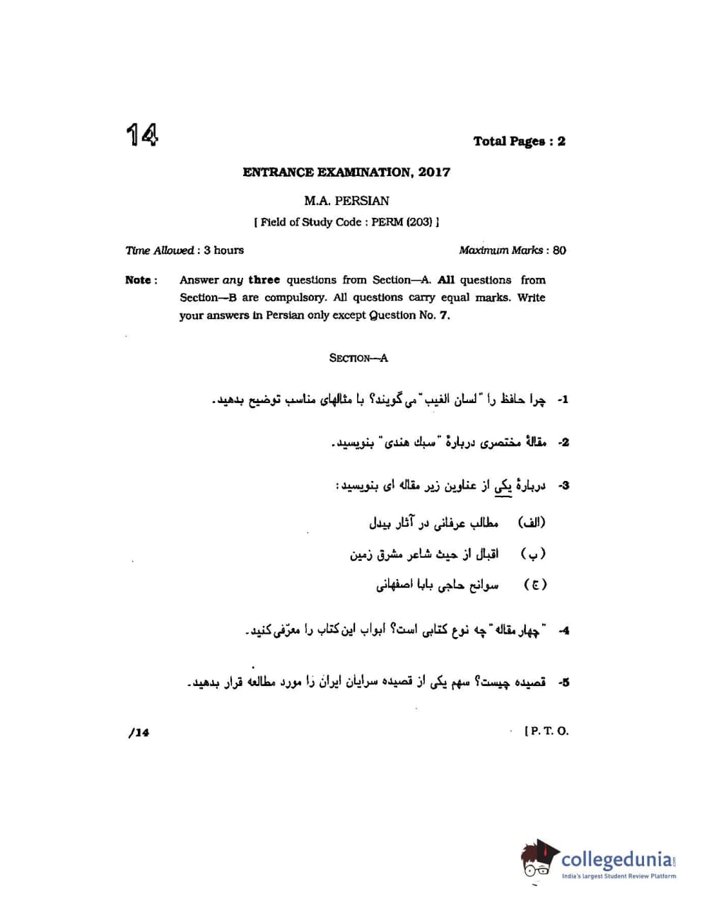| JNUEE 2017 M.A Persian Question Paper PDF | JNUEE 2017 M.A Persian Answer Key PDF |