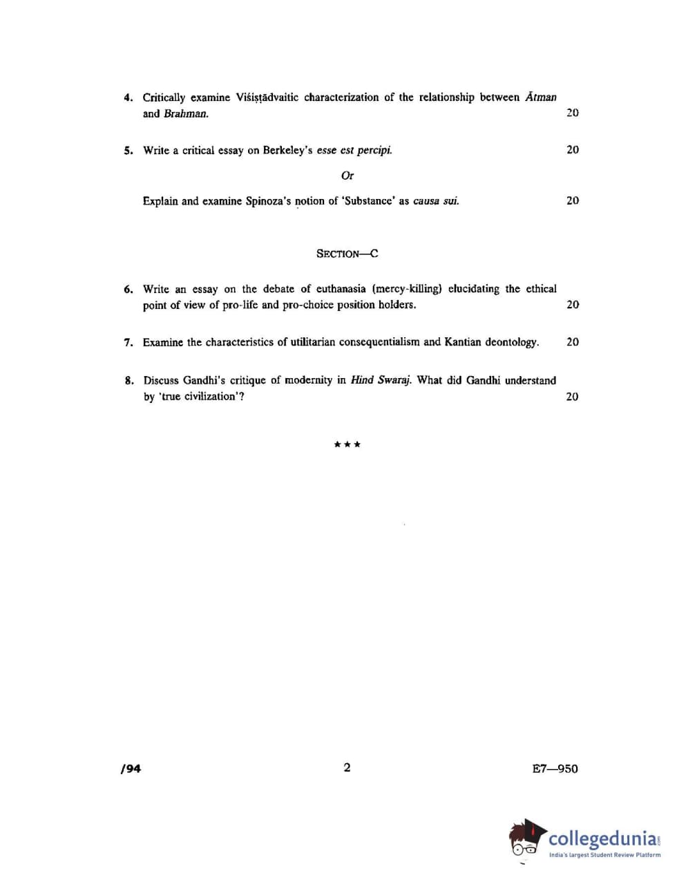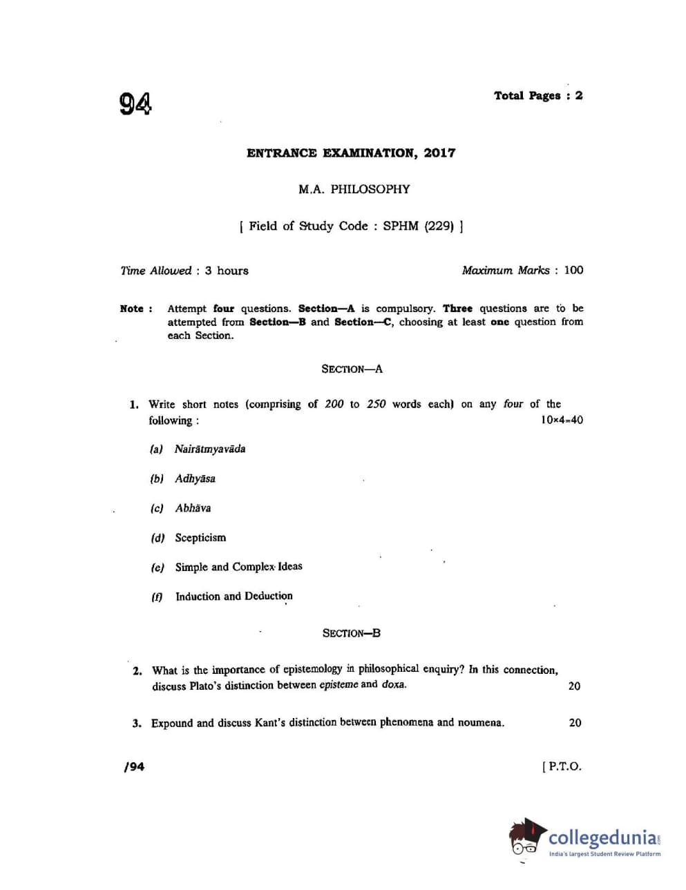 JNUEE 2017 M.A Philosophy Question paper with answer key pdf is available for download. The exam was successfully organized by Jawaharlal Nehru University (JNU). The question paper comprised a total of 8 questions.