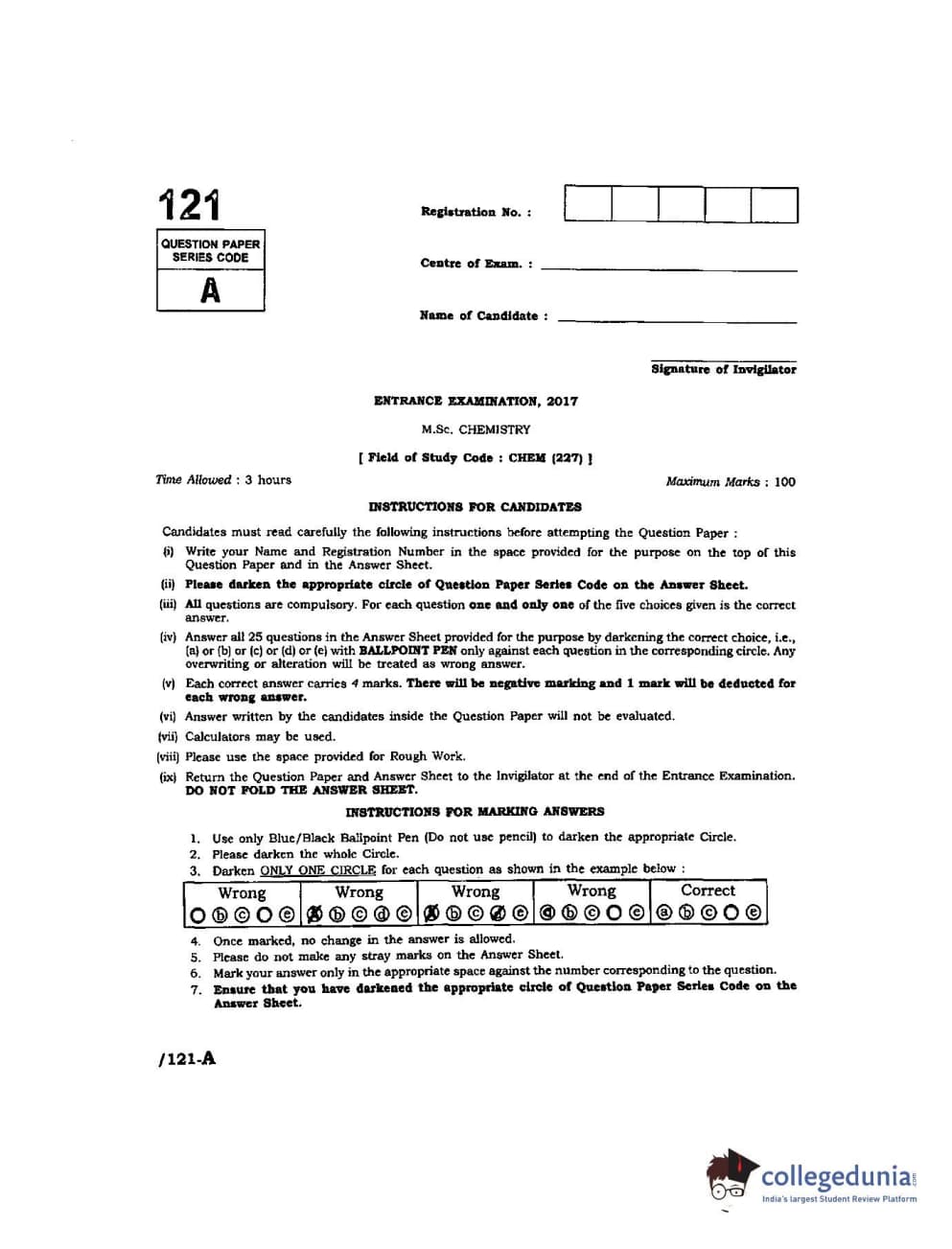 | JNUEE 2017 M.Sc Chemistry Question Paper PDF | JNUEE 2017 M.Sc Chemistry Answer Key PDF |