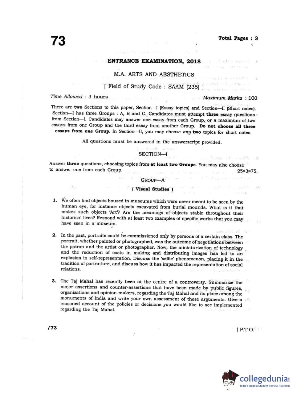 JNUEE 2018 M.A Arts and Aesthetics Question paper with answer key pdf is available for download. The exam was successfully organized by Jawaharlal Nehru University (JNU). The question paper comprised a total of 11 questions.