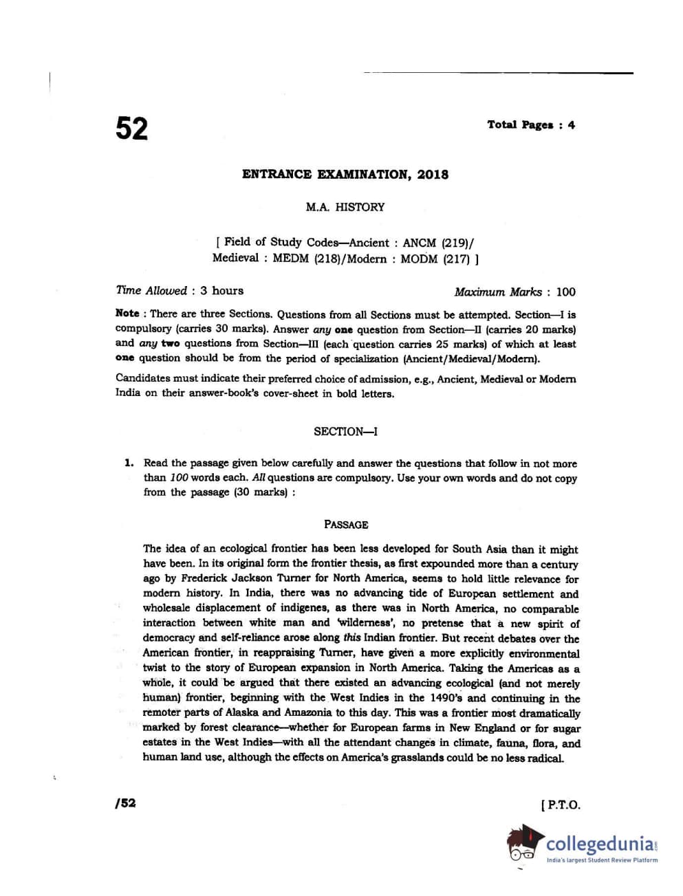 JNUEE 2018 M. A. in Modern History Question Paper with Answer Key PDFs