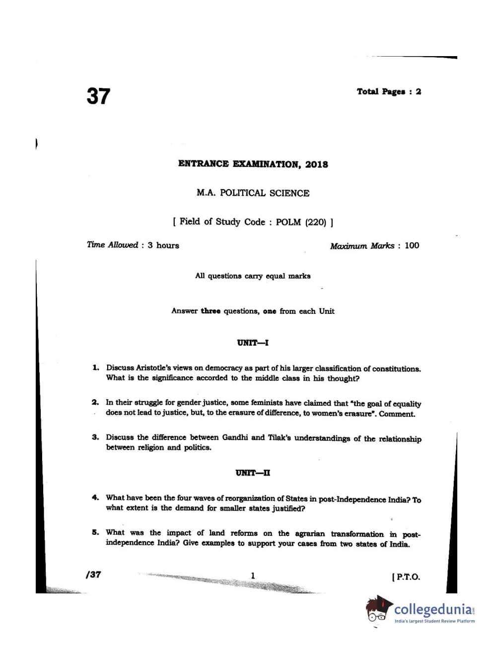 | JNUEE 2018 M.A Political Science Question Paper PDF | JNUEE 2018 M.A Political Science Answer Key PDF |