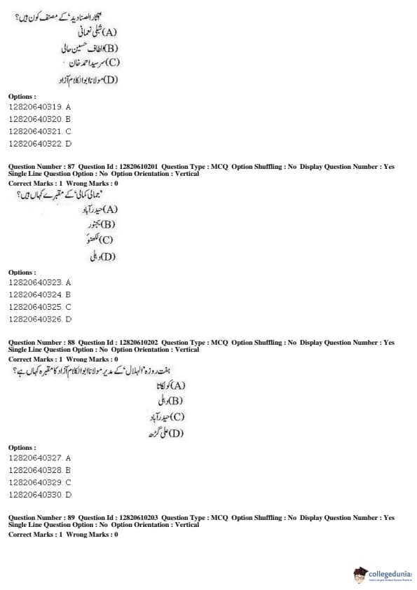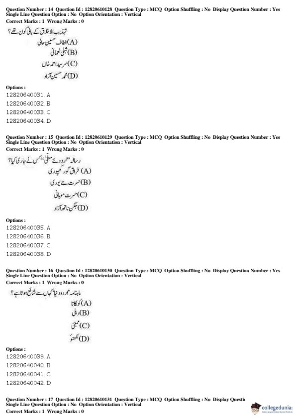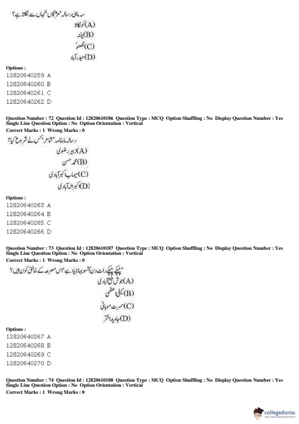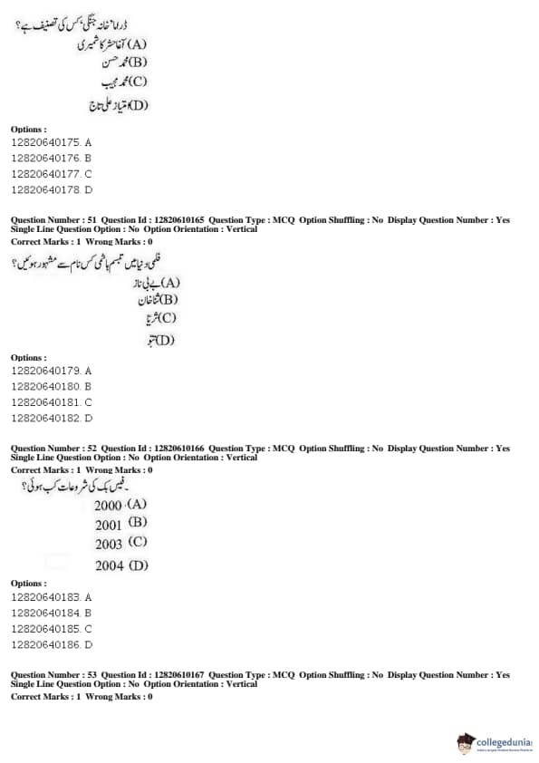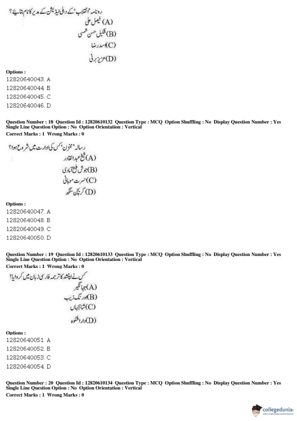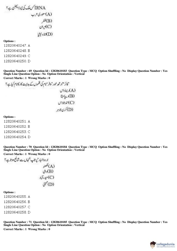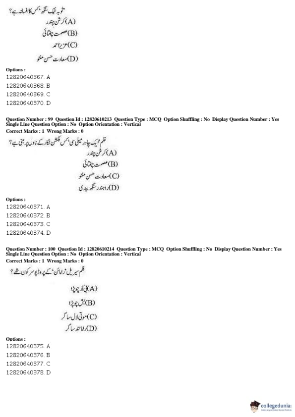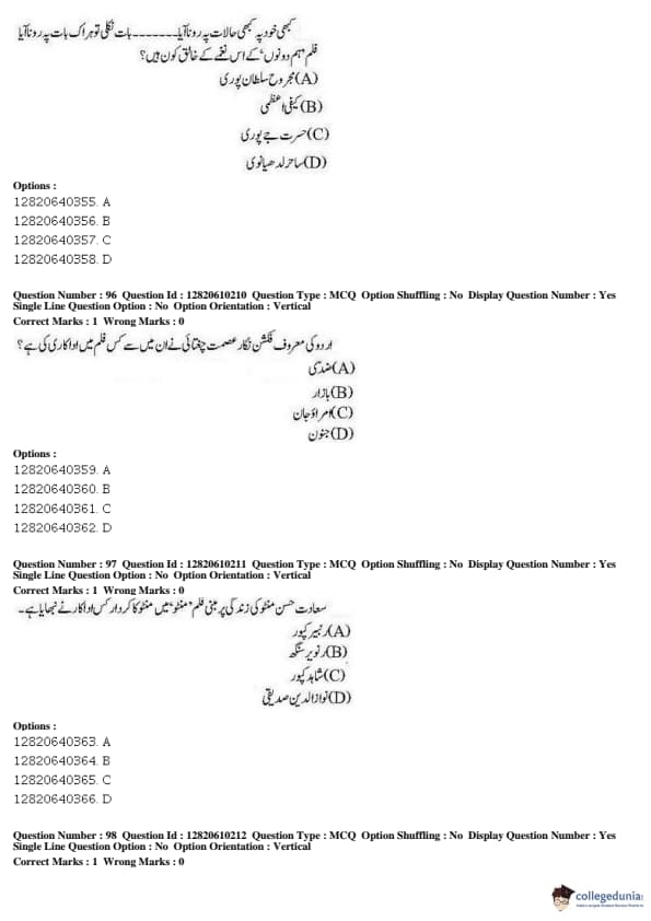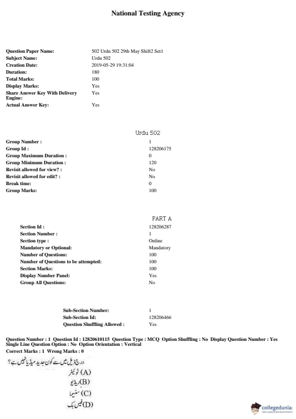 JNUEE 2019 Advanced Diploma Urdu Question paper with answer key pdf conducted on May 27, 2019 is available for download. The exam was successfully organized by National Testing Agency (NTA). The question paper comprised a total of 100 questions.