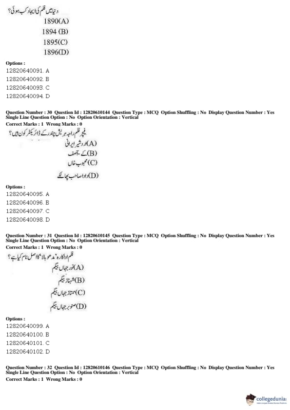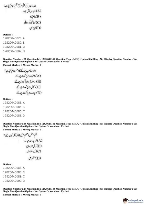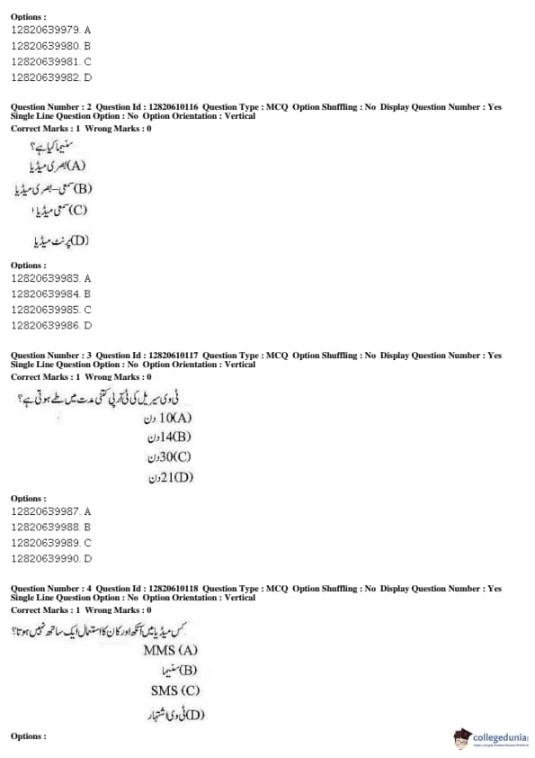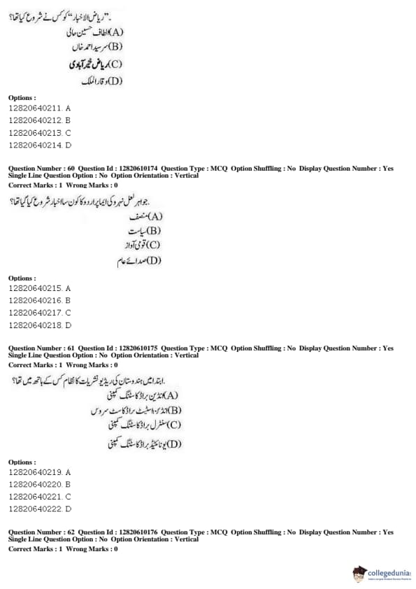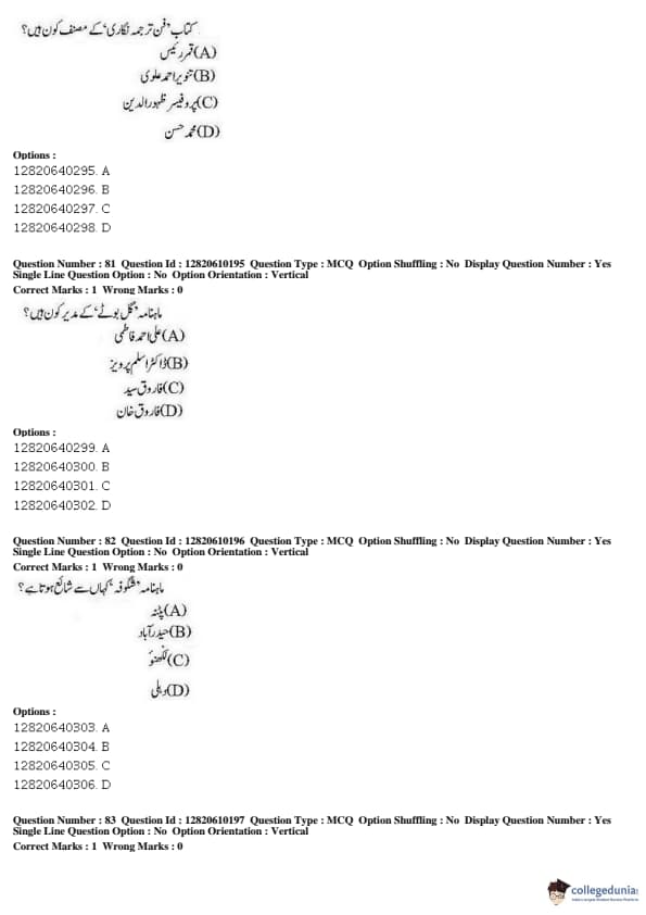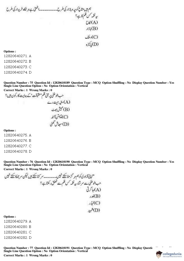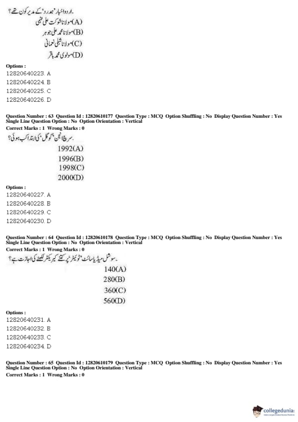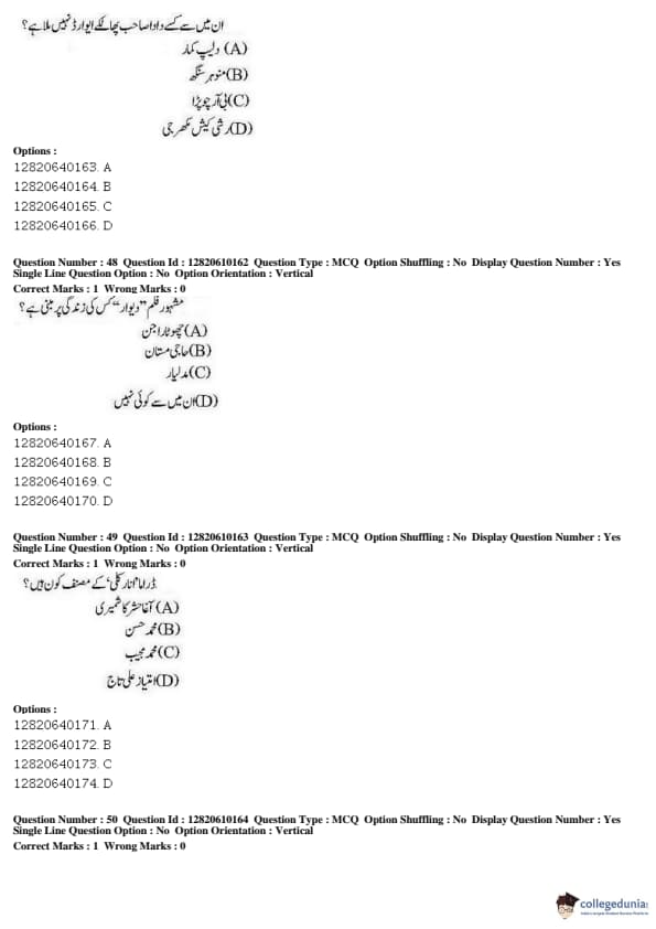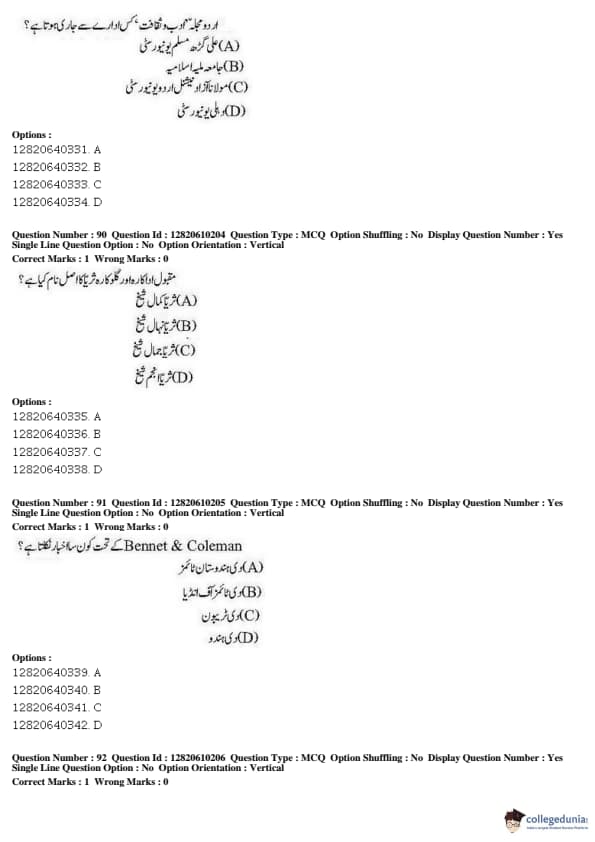 JNUEE 2019 Advanced Diploma Urdu Question paper with answer key pdf conducted on May 27, 2019 is available for download. The exam was successfully organized by National Testing Agency (NTA). The question paper comprised a total of 100 questions.