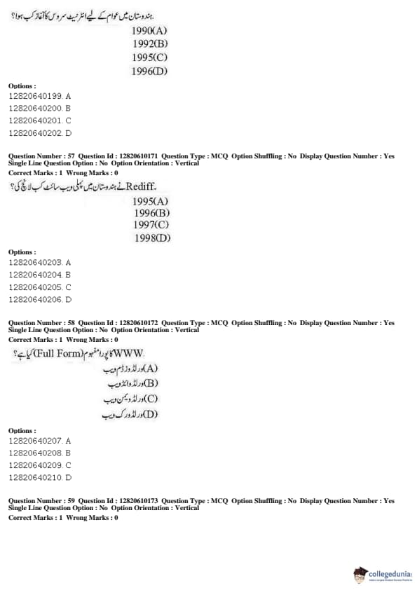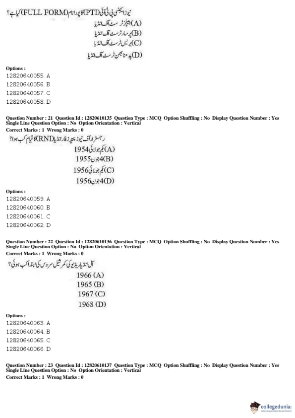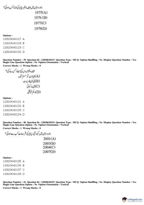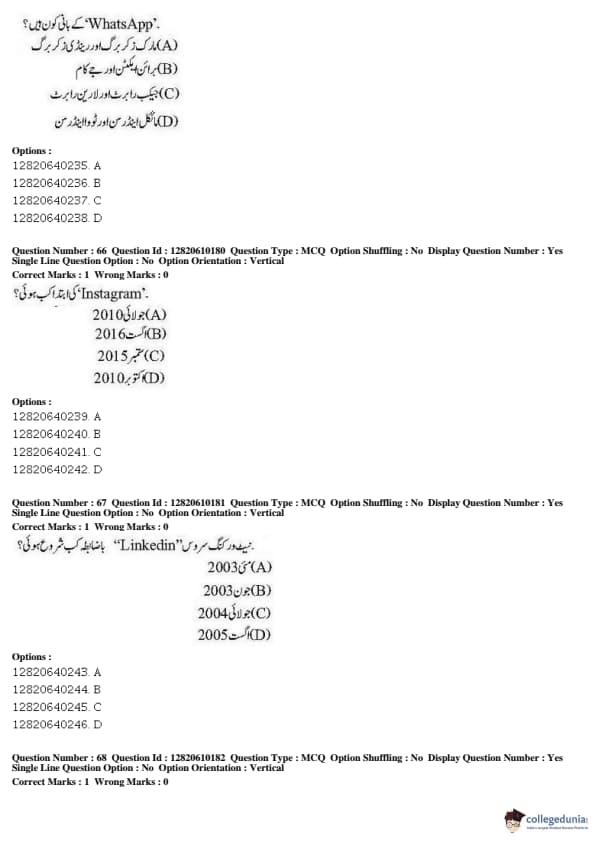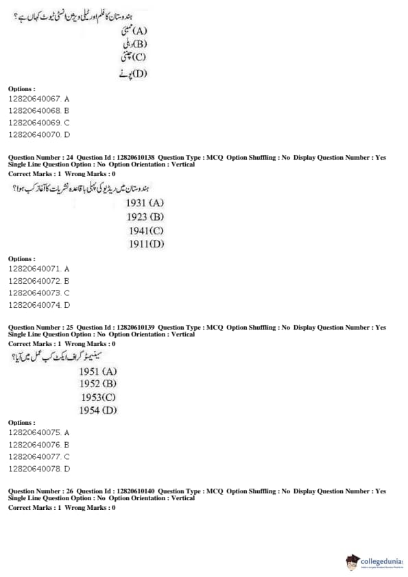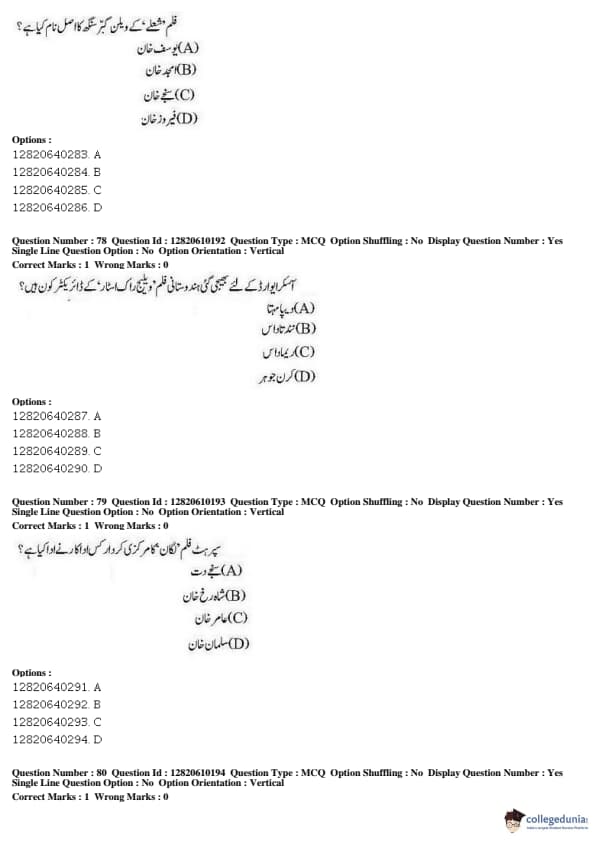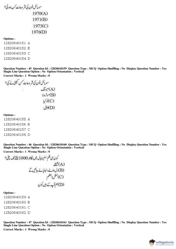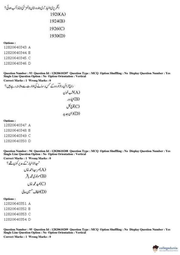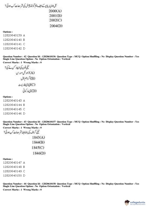 JNUEE 2019 Advanced Diploma Urdu Question paper with answer key pdf conducted on May 27, 2019 is available for download. The exam was successfully organized by National Testing Agency (NTA). The question paper comprised a total of 100 questions.