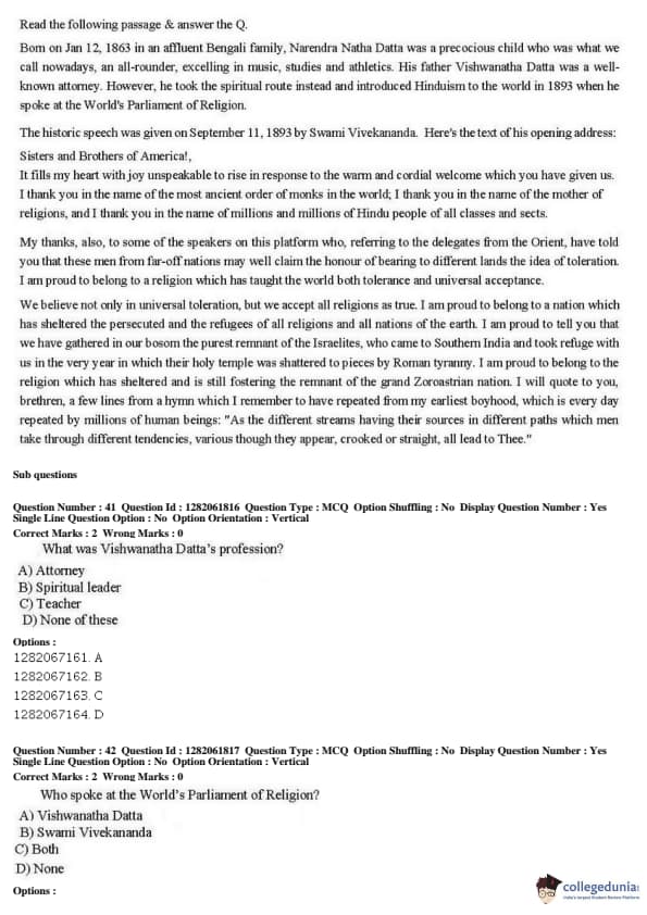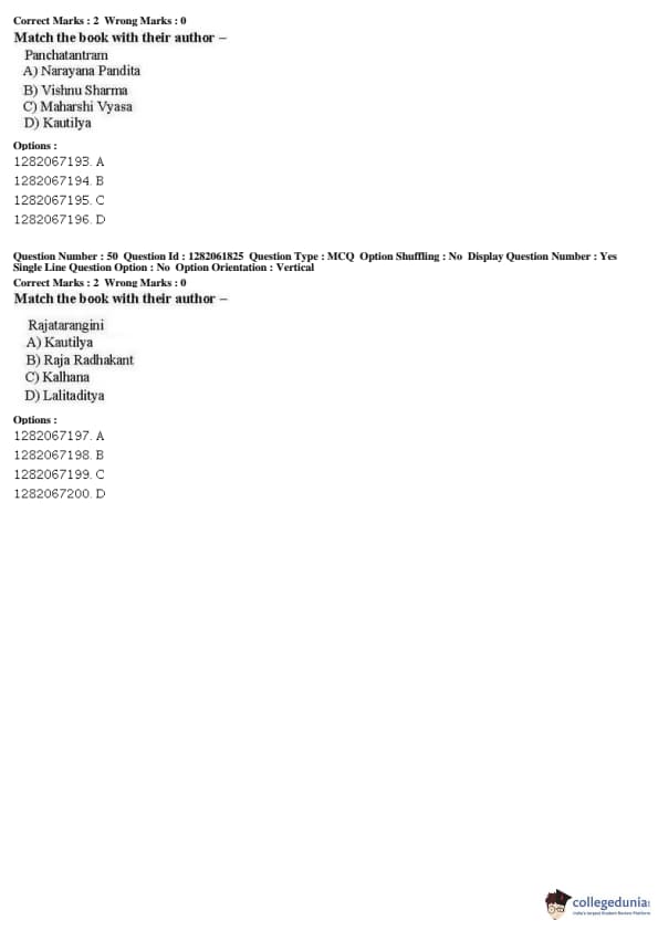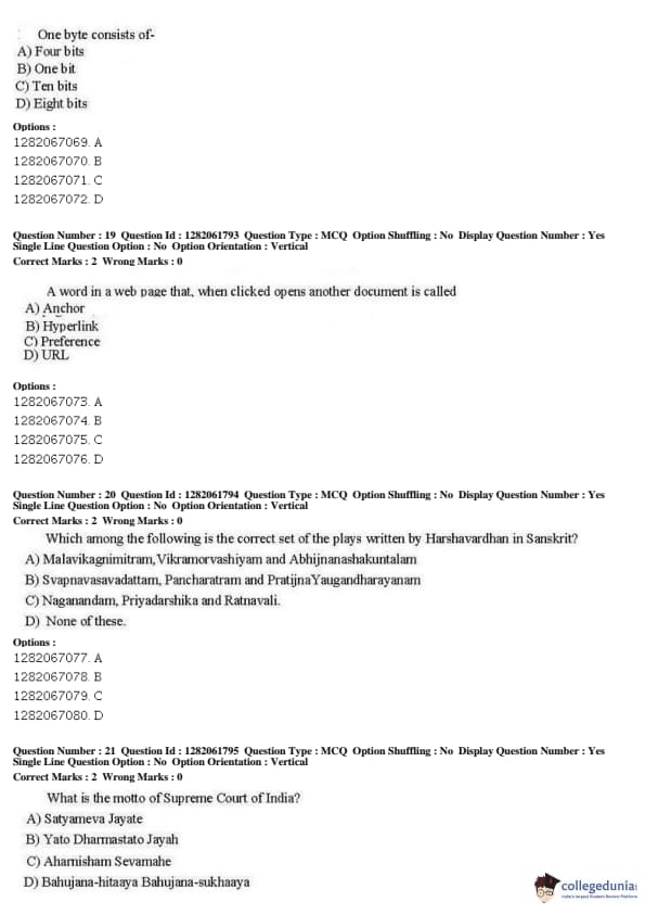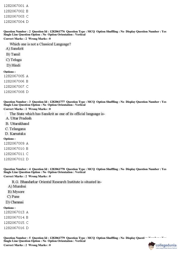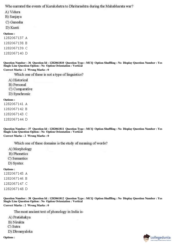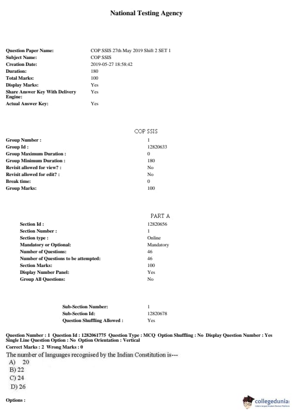 JNUEE 2019 COP SSIS Question paper with answer key pdf conducted on May 27, 2019 is available for download. The exam was successfully organized by National Testing Agency (NTA). The question paper comprised a total of 50 questions.