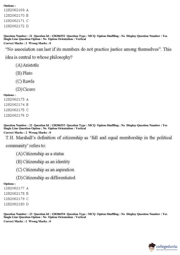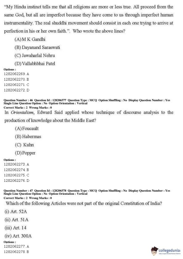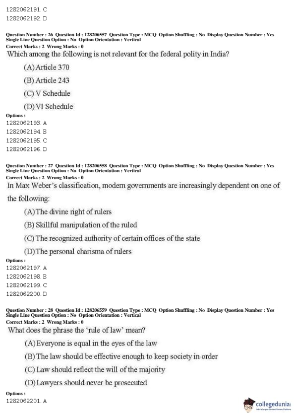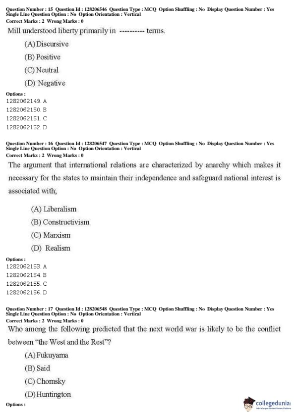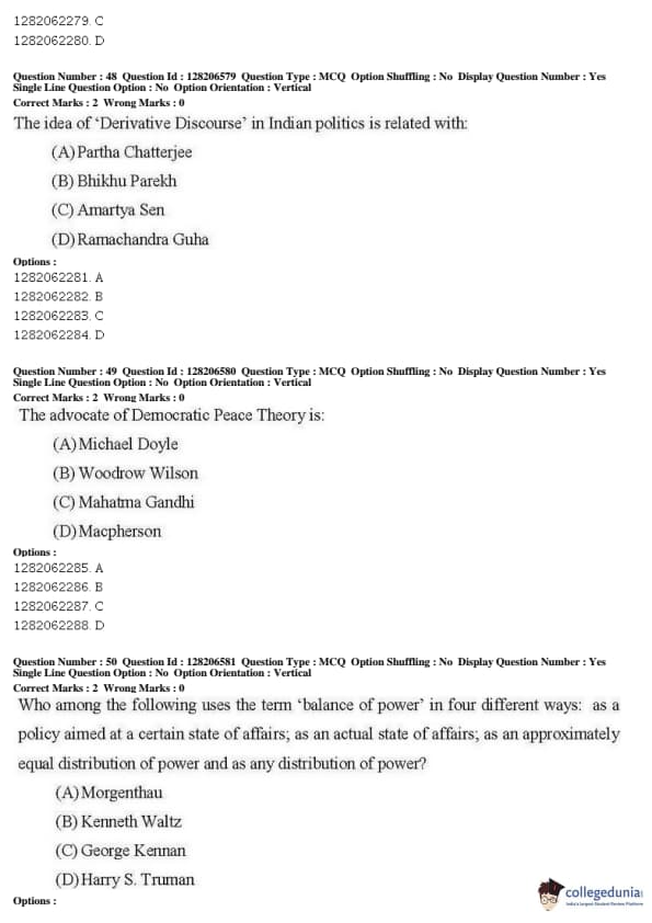 JNUEE 2019 M.A. Political Science Question paper with answer key pdf conducted on May 27, 2019 in Shift 1 is available for download. The exam was successfully organized by National Testing Agency (NTA). The question paper comprised a total of 50 questions.