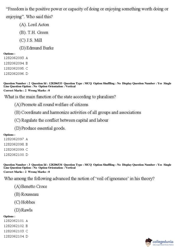 JNUEE 2019 M.A. Political Science Question Paper with Answer Key PDFs Shift 1