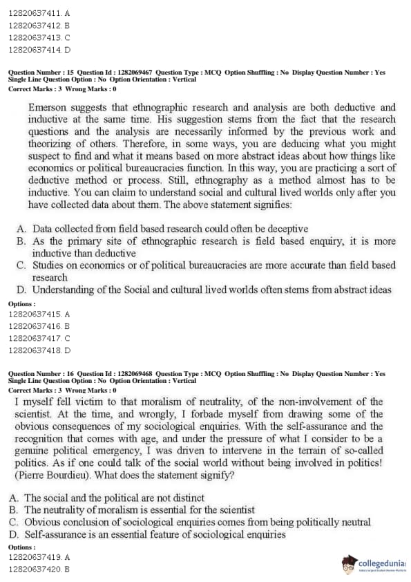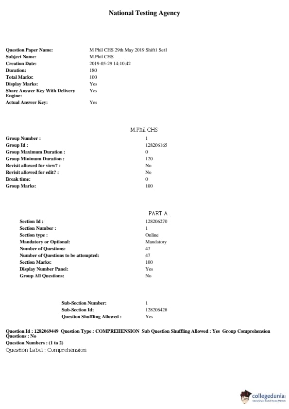 JNUEE 2019 M Phil CHS Question paper with answer key pdf conducted on May 29, 2019 in Shift 1 is available for download. The exam was successfully organized by National Testing Agency (NTA). The question paper comprised a total of 55 questions.