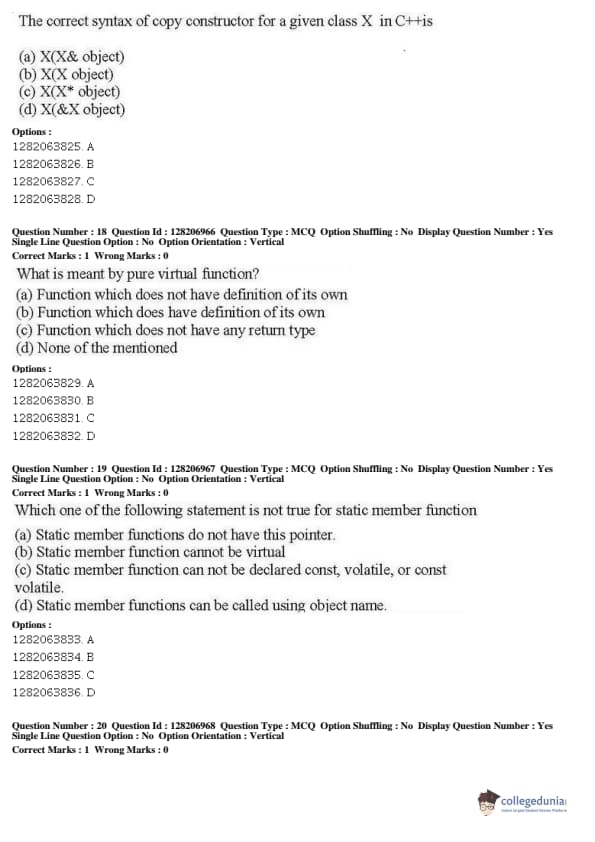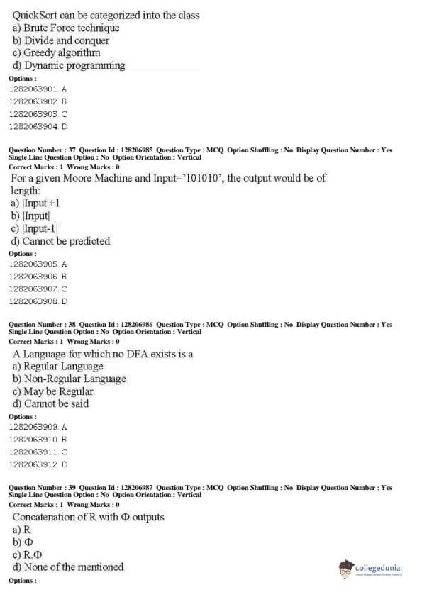JNUEE 2019 M.Phil Computer and system science Shift 1 Set1 Question Paper with Answer Key PDFs