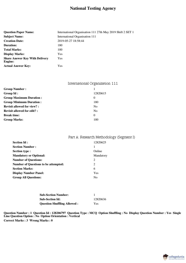 | JNUEE 2019 M.Phil International Organisation Question Paper PDF | JNUEE 2019 M.Phil International Organisation Answer Key PDF |
