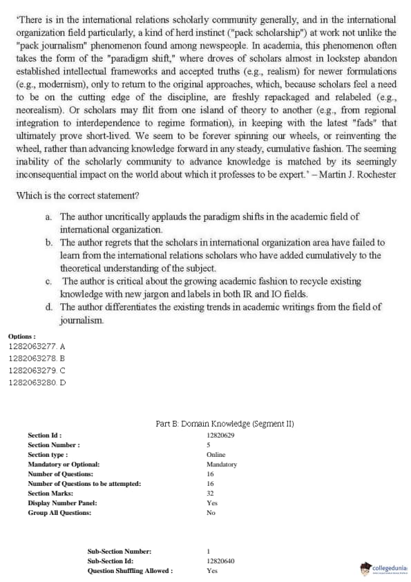 JNUEE 2019 M.Phil International Organisation Question paper with answer key pdf conducted on May 27, 2019 in Shift 2 is available for download. The exam was successfully organized by National Testing Agency (NTA). The question paper comprised a total of 62 questions.