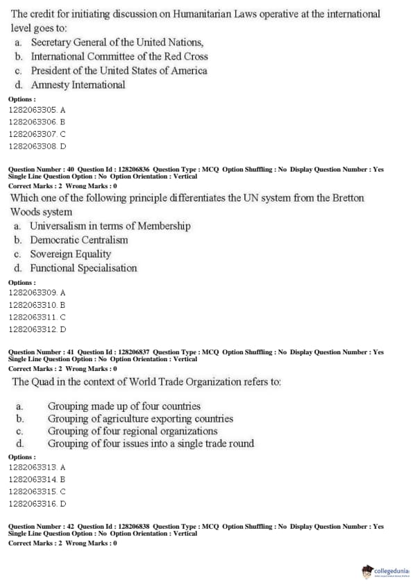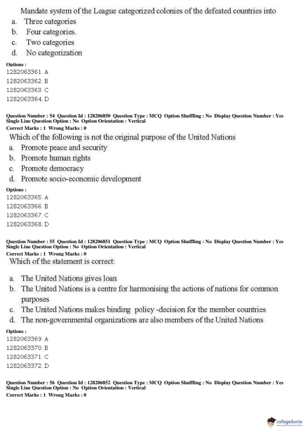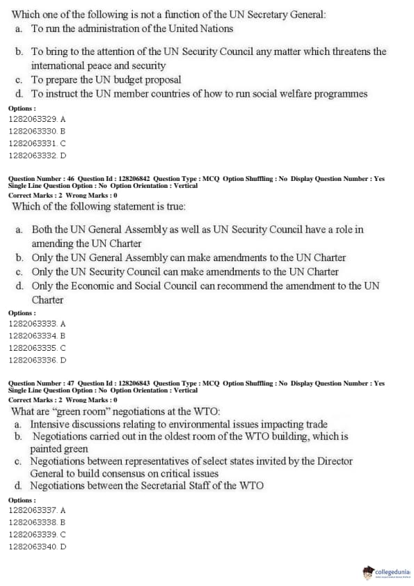 JNUEE 2019 M.Phil International Organisation Question Paper with Answer Key PDFs Shift 2
