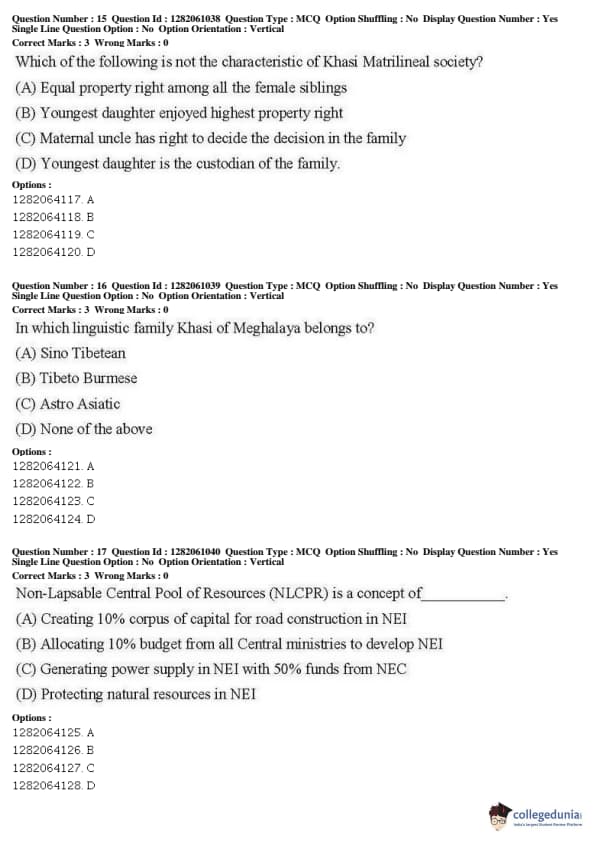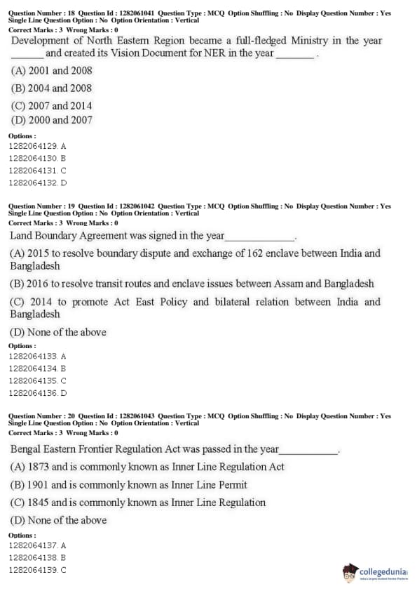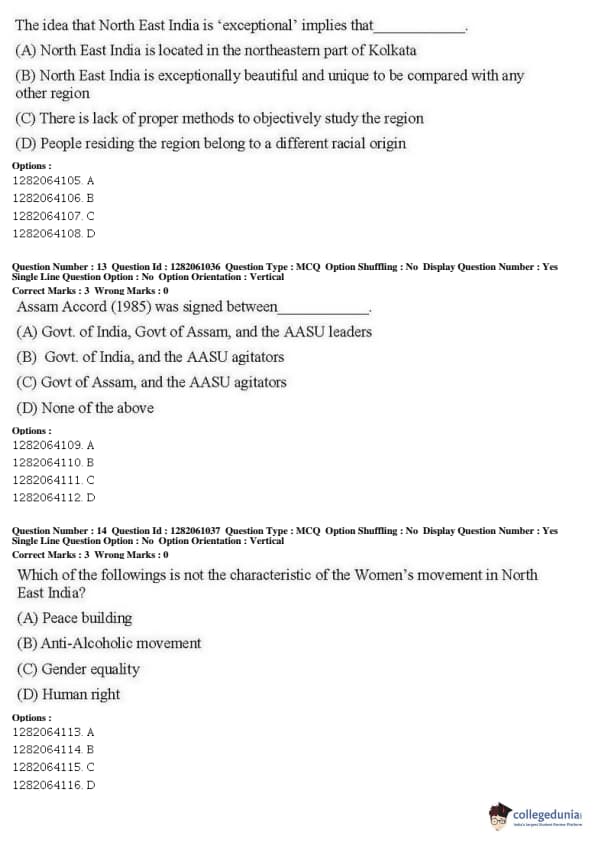 JNUEE 2019 M.Phil North East India Studies Question paper with answer key pdf conducted on May 27, 2019 in Shift 2 is available for download. The exam was successfully organized by National Testing Agency (NTA). The question paper comprised a total of 35 questions.