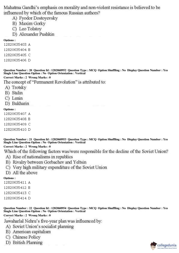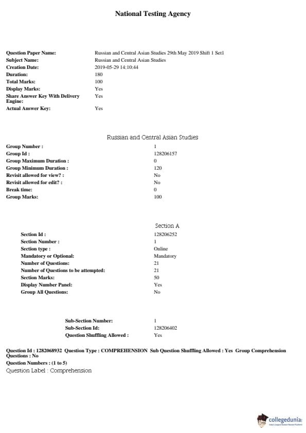JNUEE 2019 M.Phil Russian and Central Asian Studies Question paper with answer key pdf conducted on May 29, 2019 in Shift 1 is available for download. The exam was successfully organized by National Testing Agency (NTA). The question paper comprised a total of 50 questions.