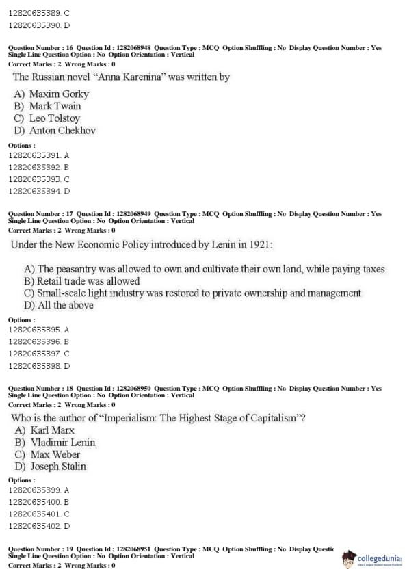 JNUEE 2019 M.Phil Russian and Central Asian Studies Question Paper with Answer Key PDFs Shift 1