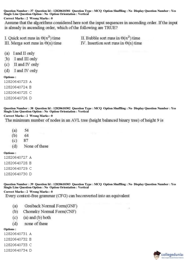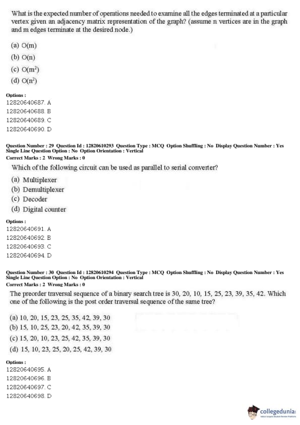 JNUEE 2019 Ph.D Computer and Systems Sciences Question Paper with Answer Key PDFs Shift 2