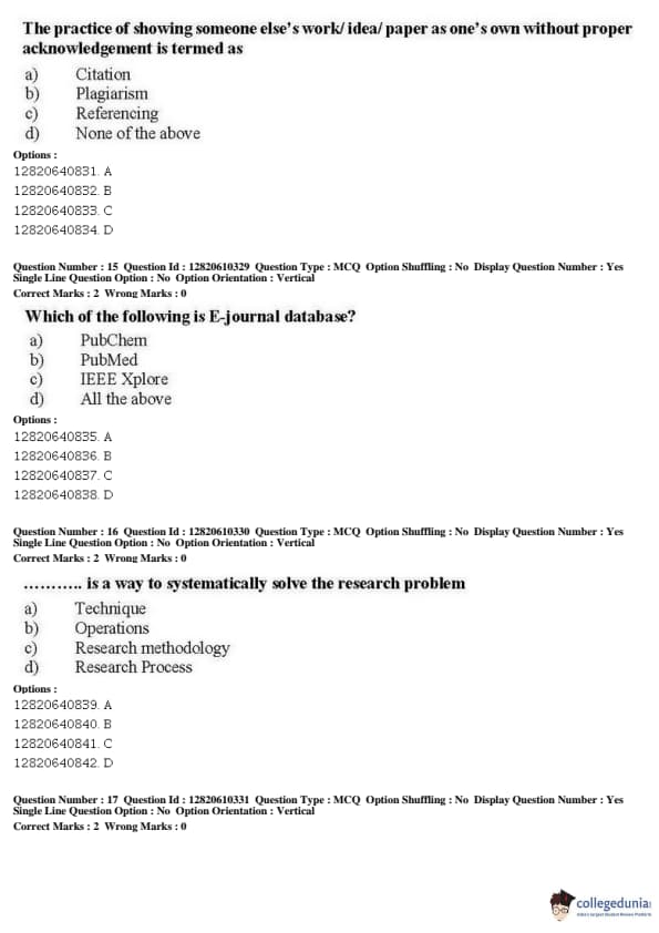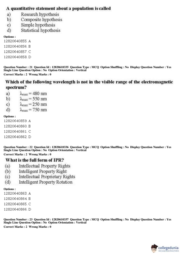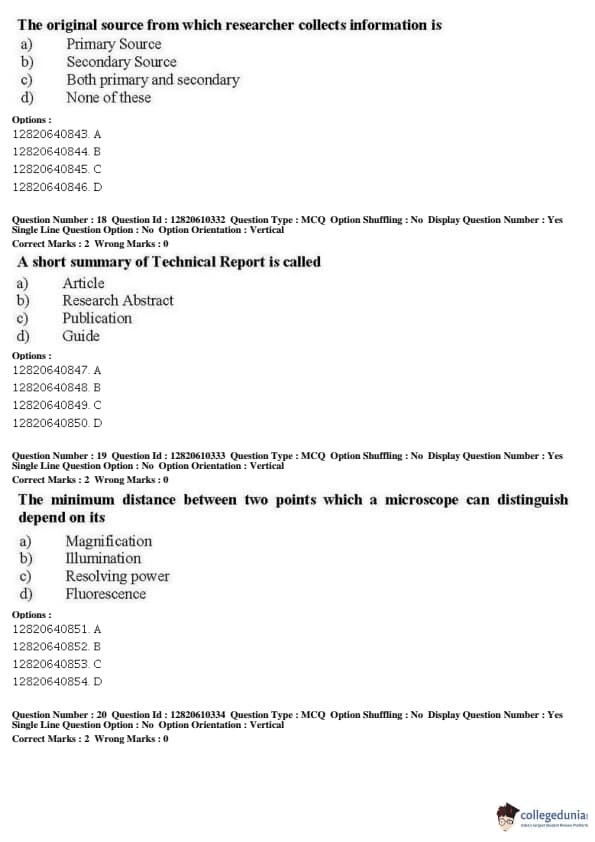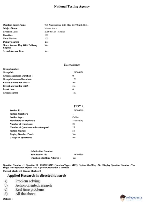 JNUEE 2019 Ph.D Nanoscience Question Paper with Answer Key PDFs Shift 2