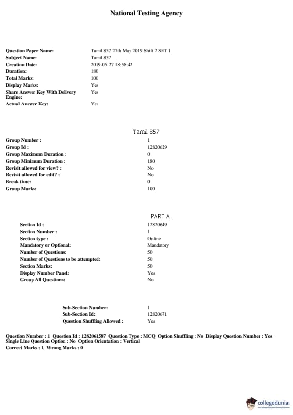 JNUEE 2019 Ph.D Tamil Question paper with answer key pdf conducted on May 27, 2019 in Shift 2 is available for download. The exam was successfully organized by National Testing Agency (NTA). The question paper comprised a total of 75 questions.