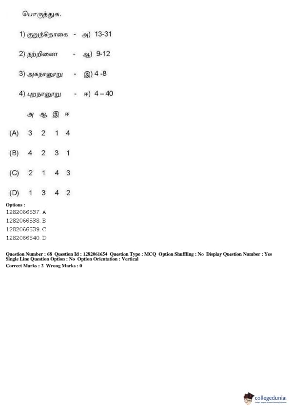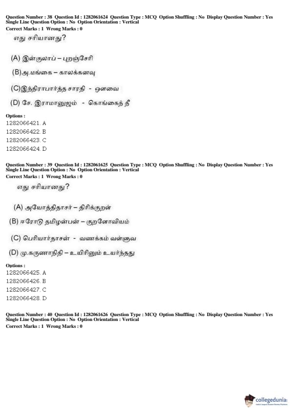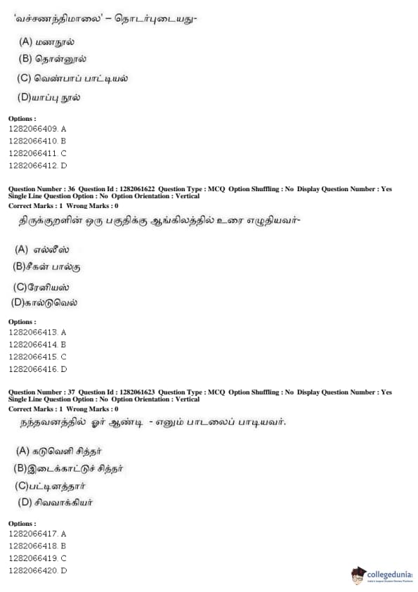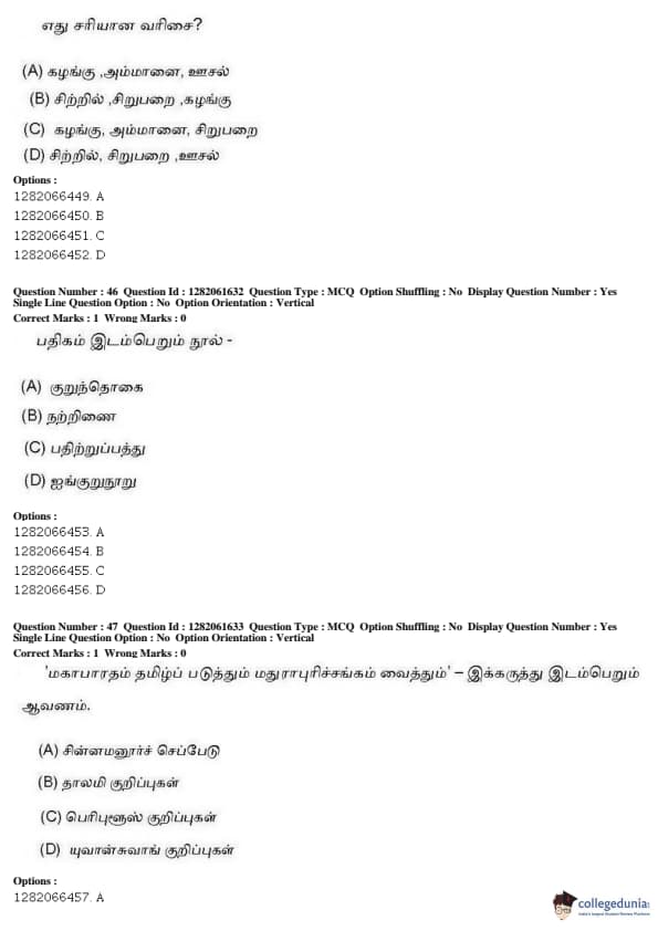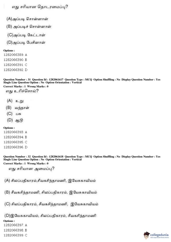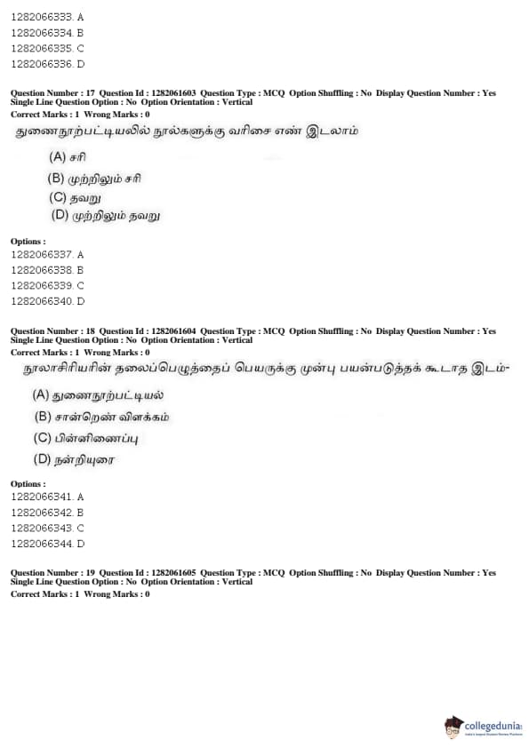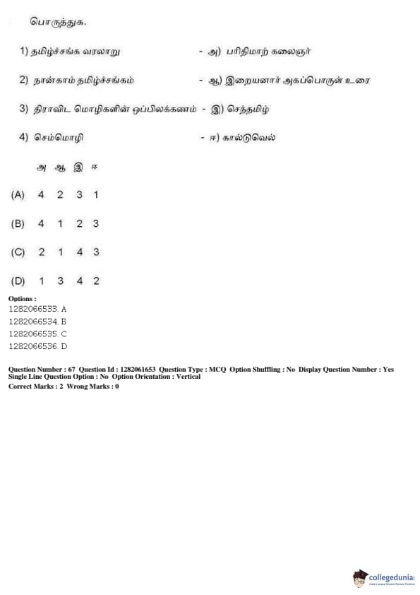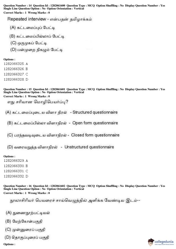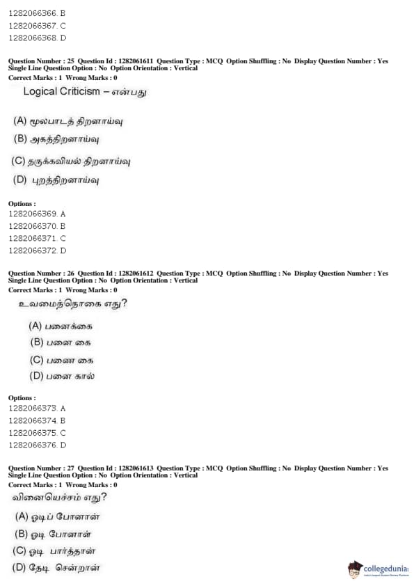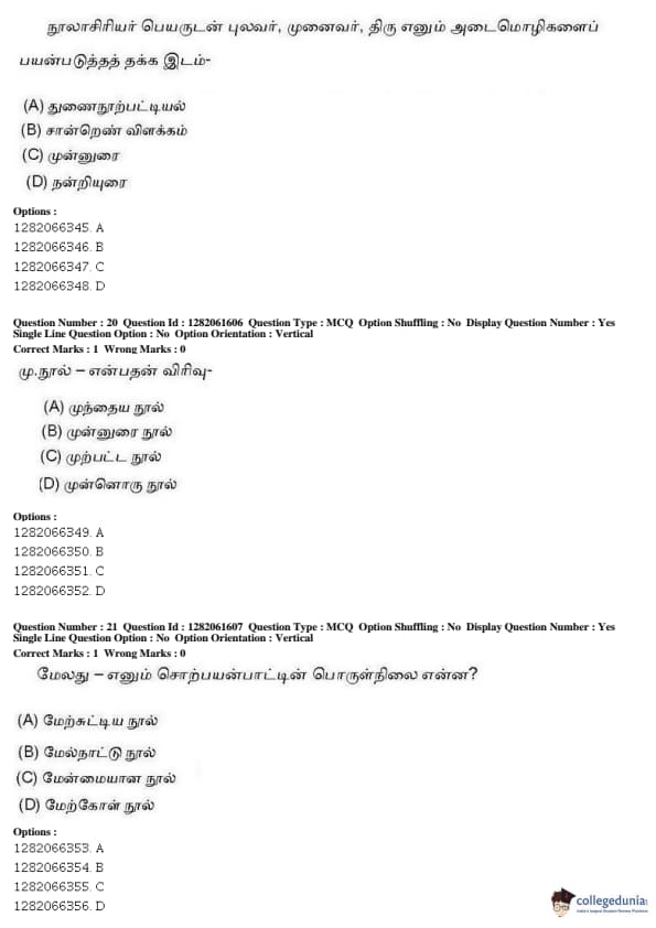 JNUEE 2019 Ph.D Tamil Question Paper with Answer Key PDFs Shift 2