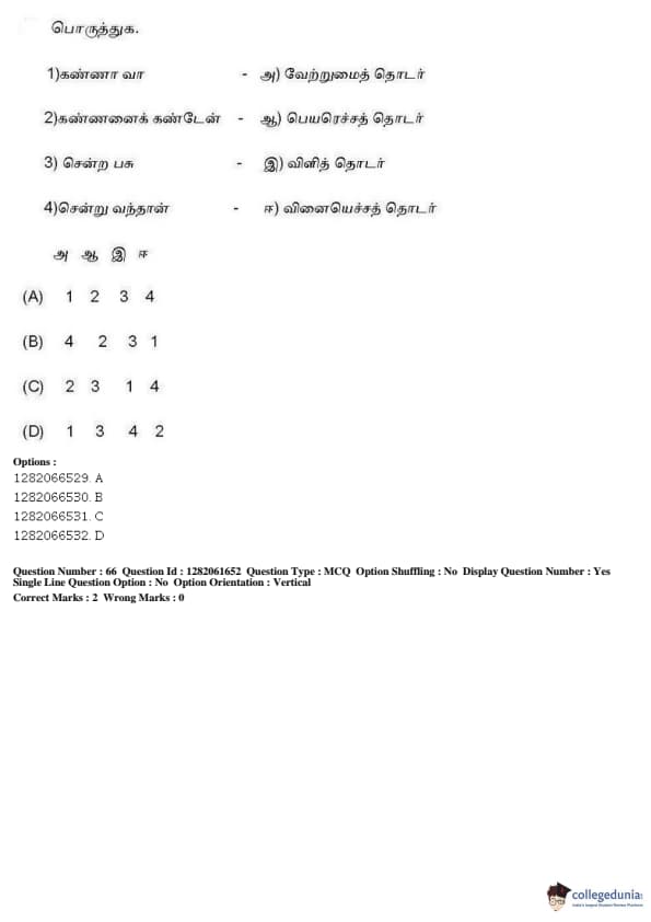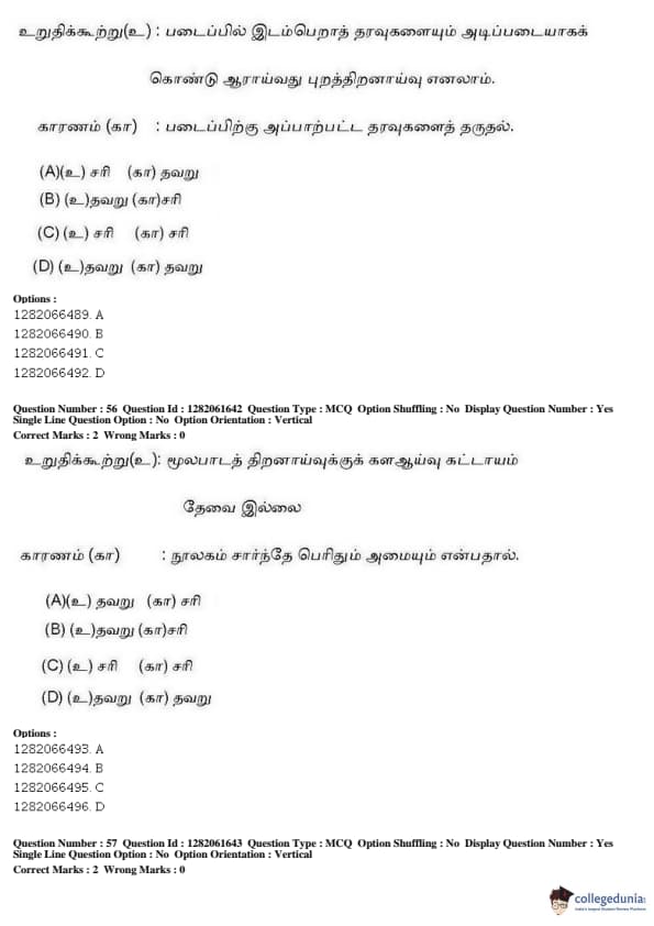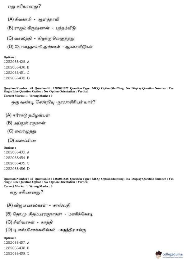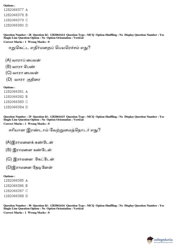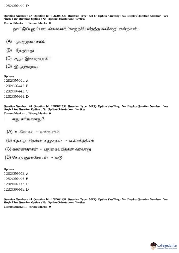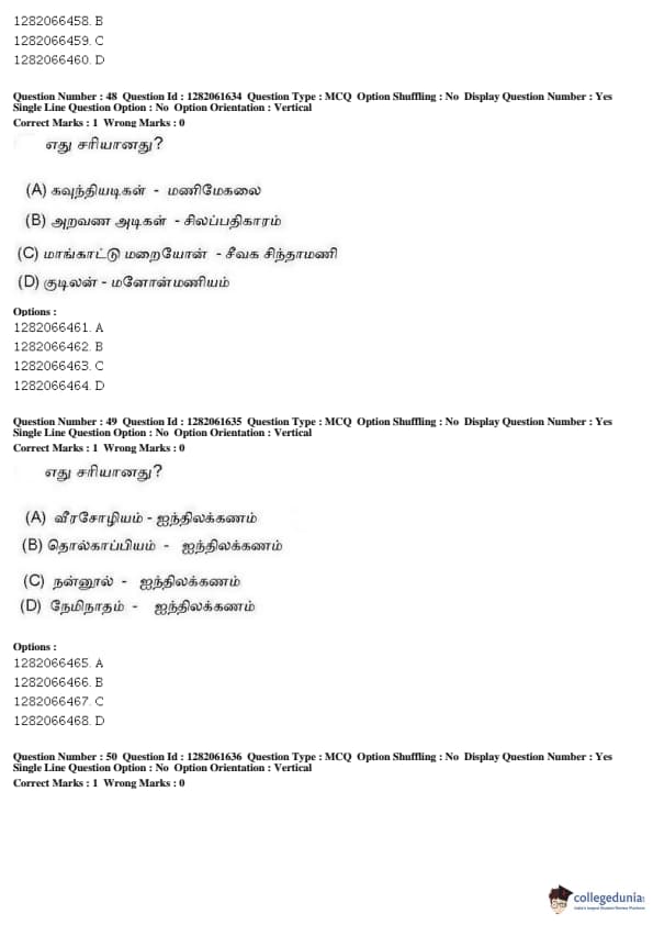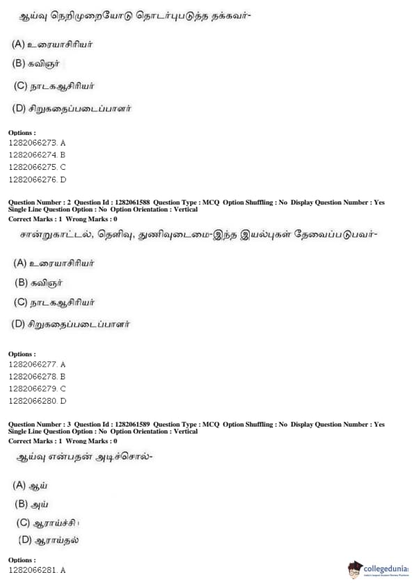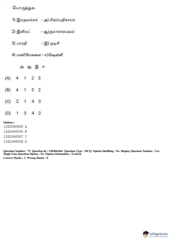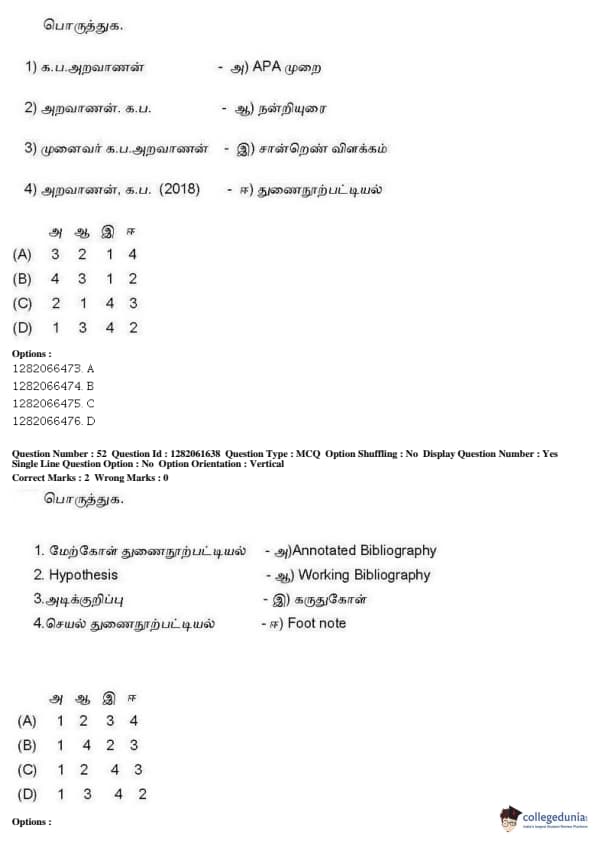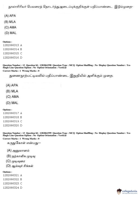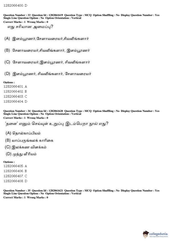 JNUEE 2019 Ph.D Tamil Question Paper with Answer Key PDFs Shift 2