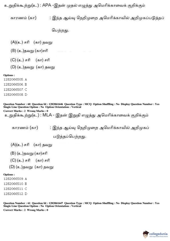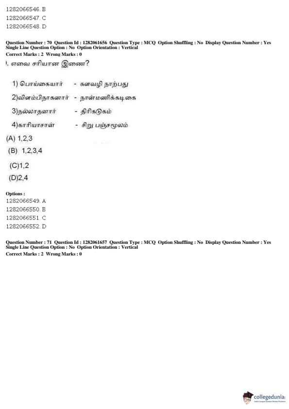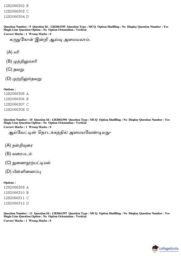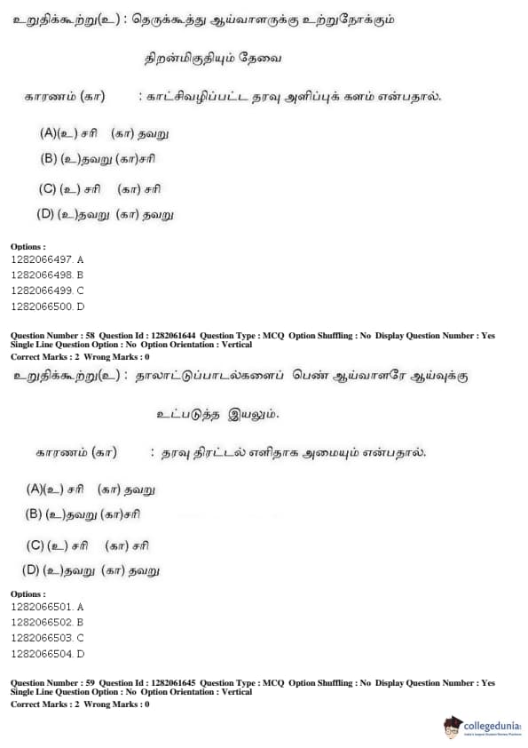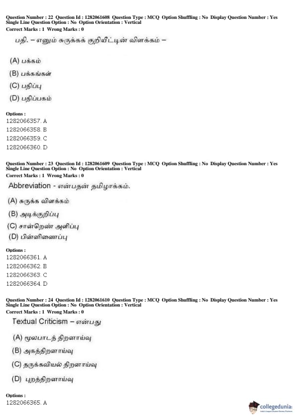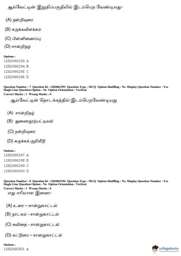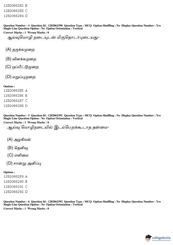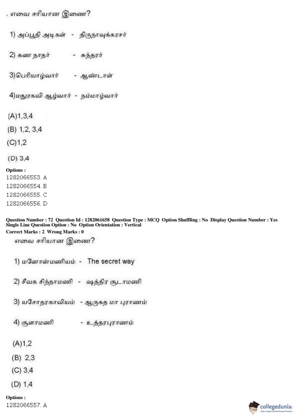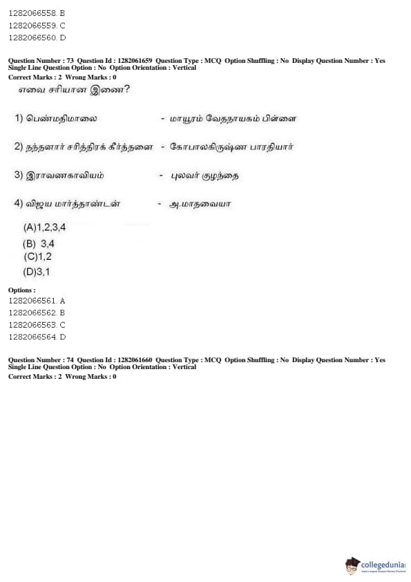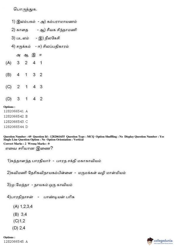 JNUEE 2019 Ph.D Tamil Question Paper with Answer Key PDFs Shift 2