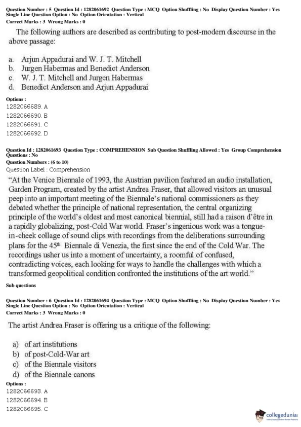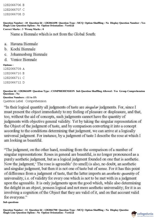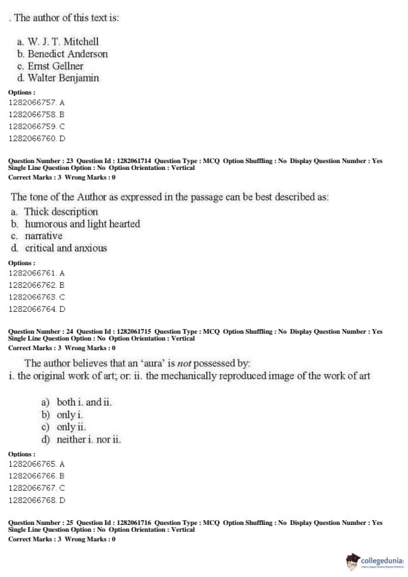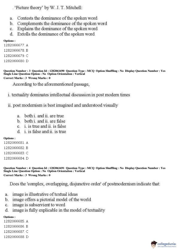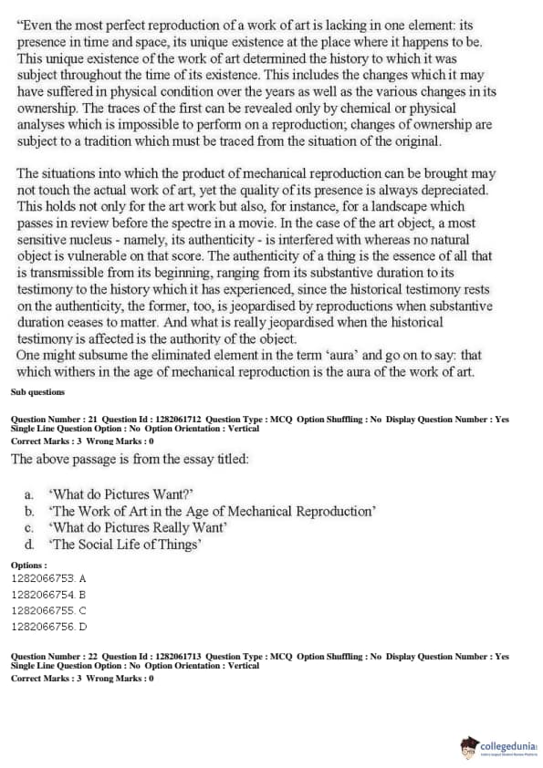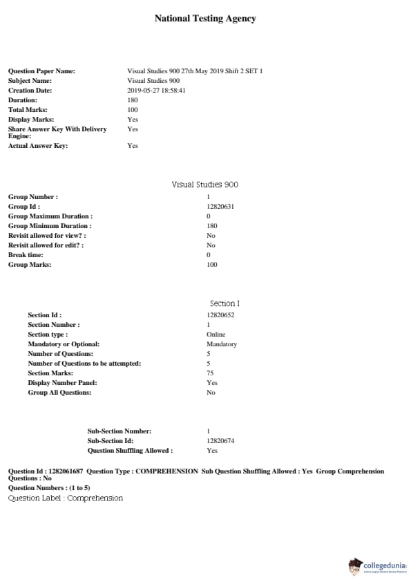 JNUEE 2019 P.hD Visual Studies Question paper with answer key pdf conducted on May 27, 2019 in Shift 2 is available for download. The exam was successfully organized by National Testing Agency (NTA). The question paper comprised a total of 38 questions.