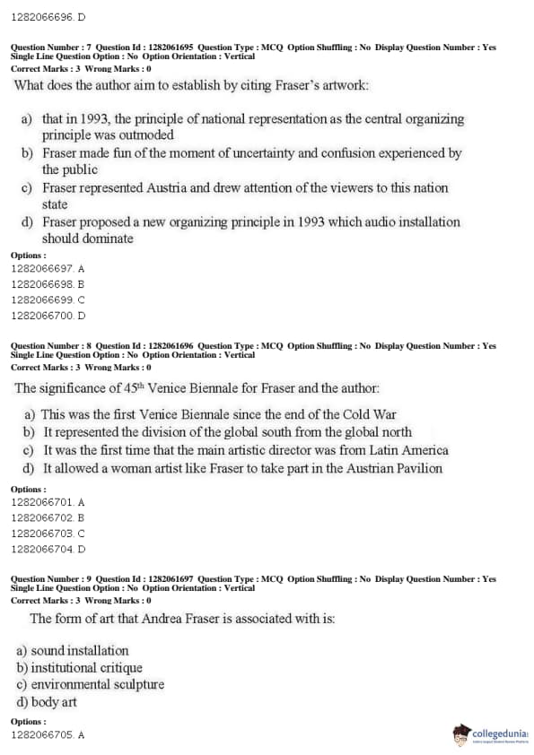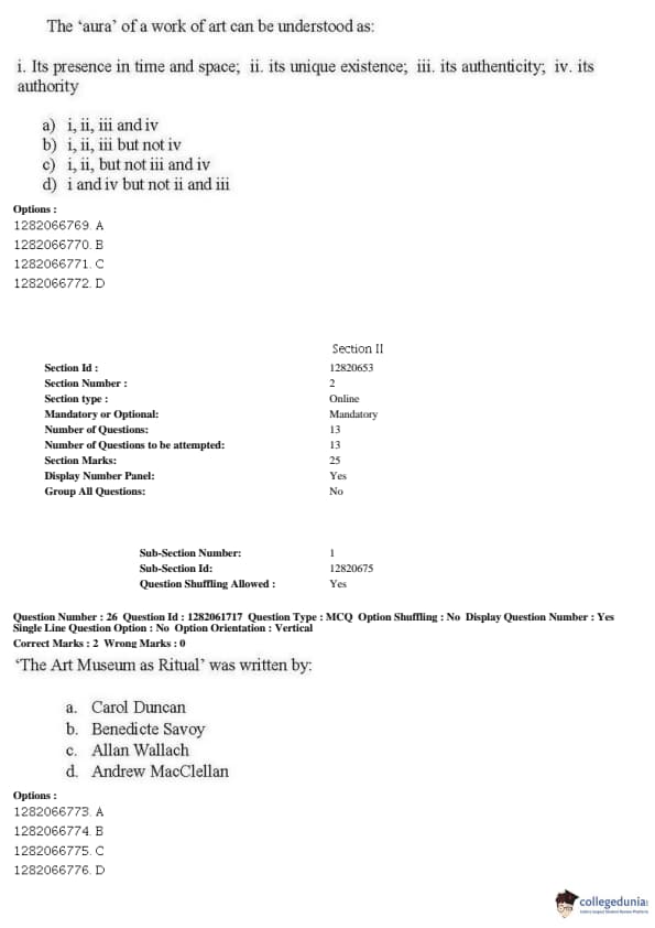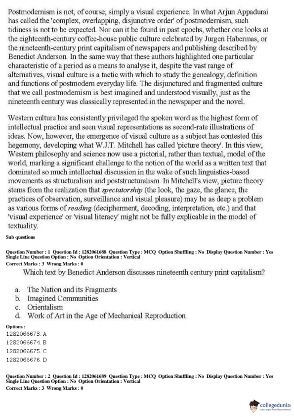 JNUEE 2019 P.hD Visual Studies Question Paper with Answer Key PDFs Shift 2