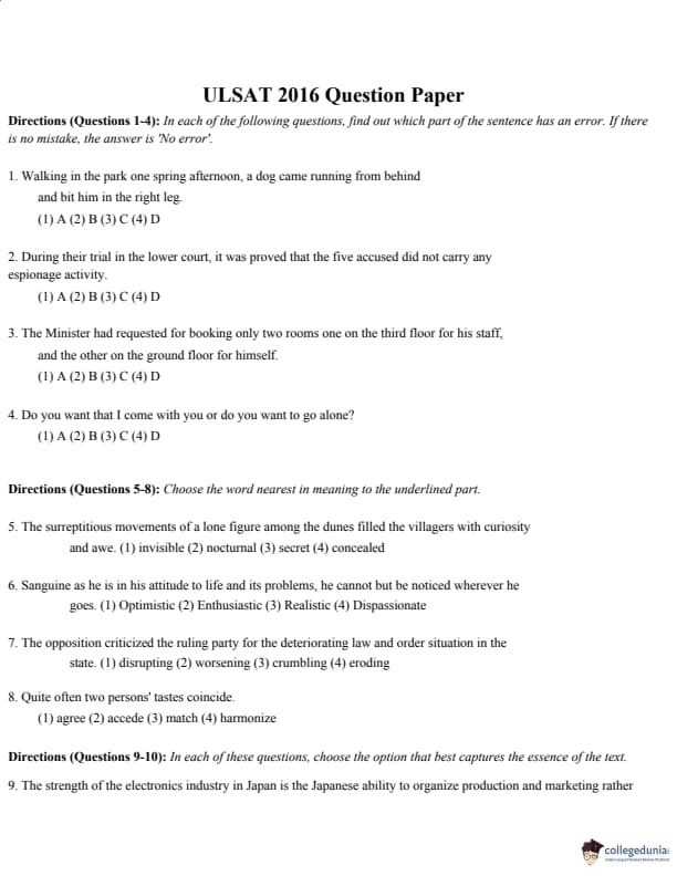 | ULSAT 2016 Question Paper PDF | ULSAT 2016 Answer Key PDF |