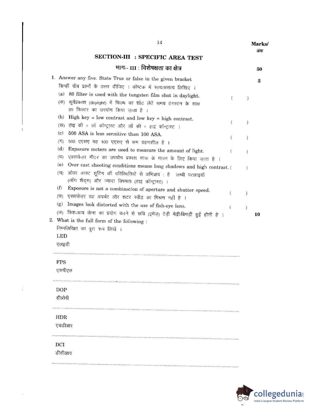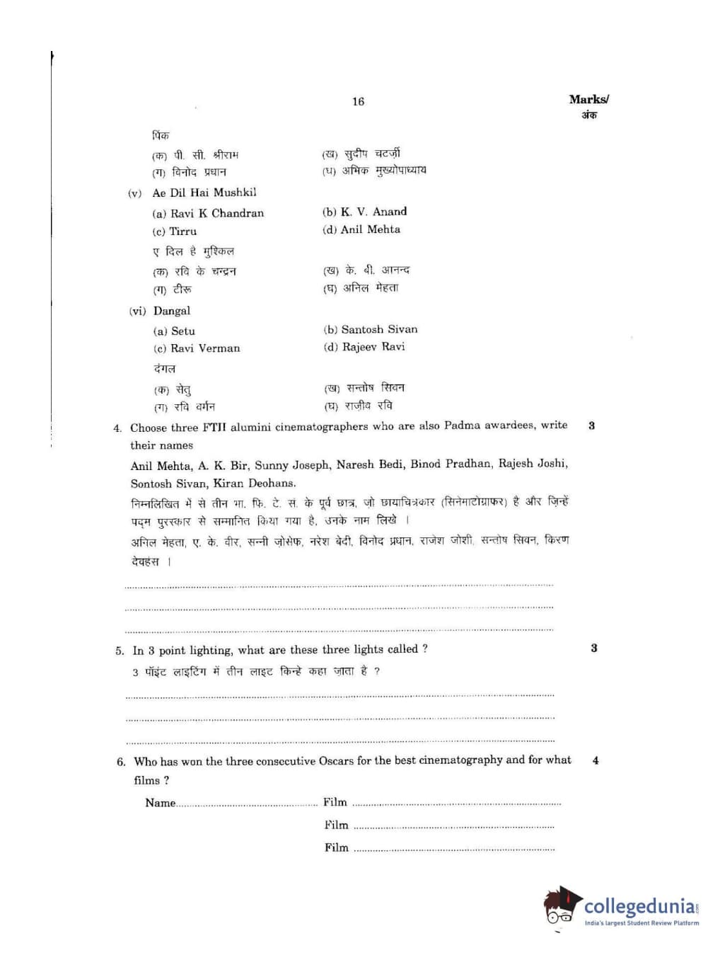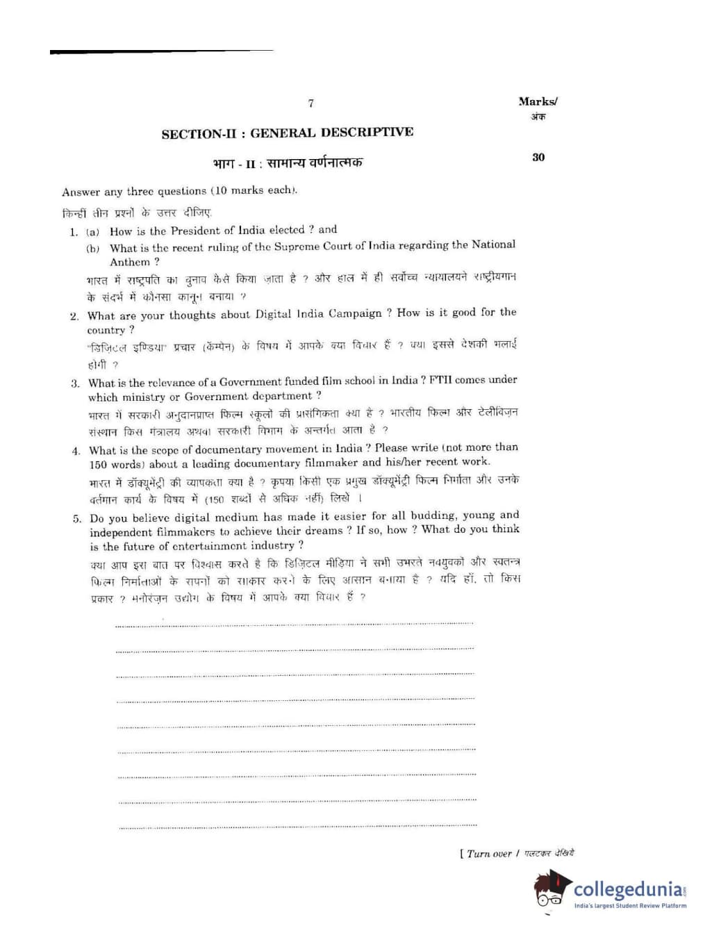 FTII Entrance Exam 2017 PG Diploma in Cinematography Question Paper with Answer Key PDFs