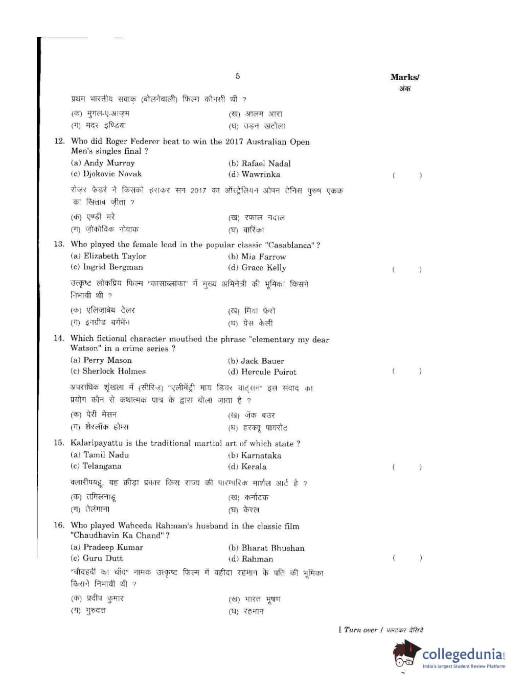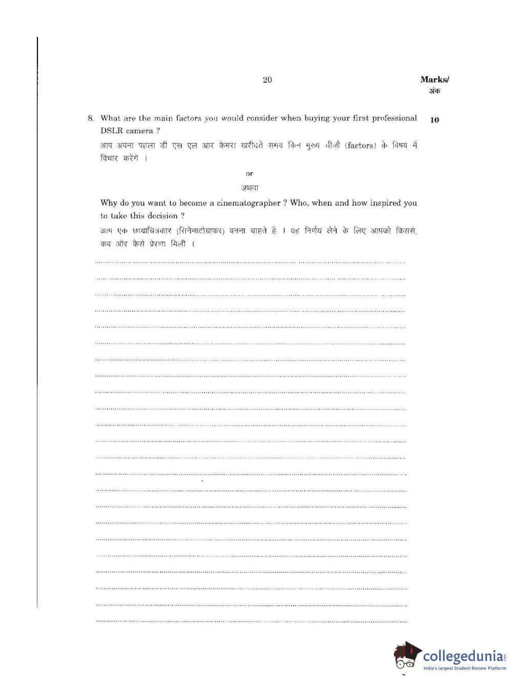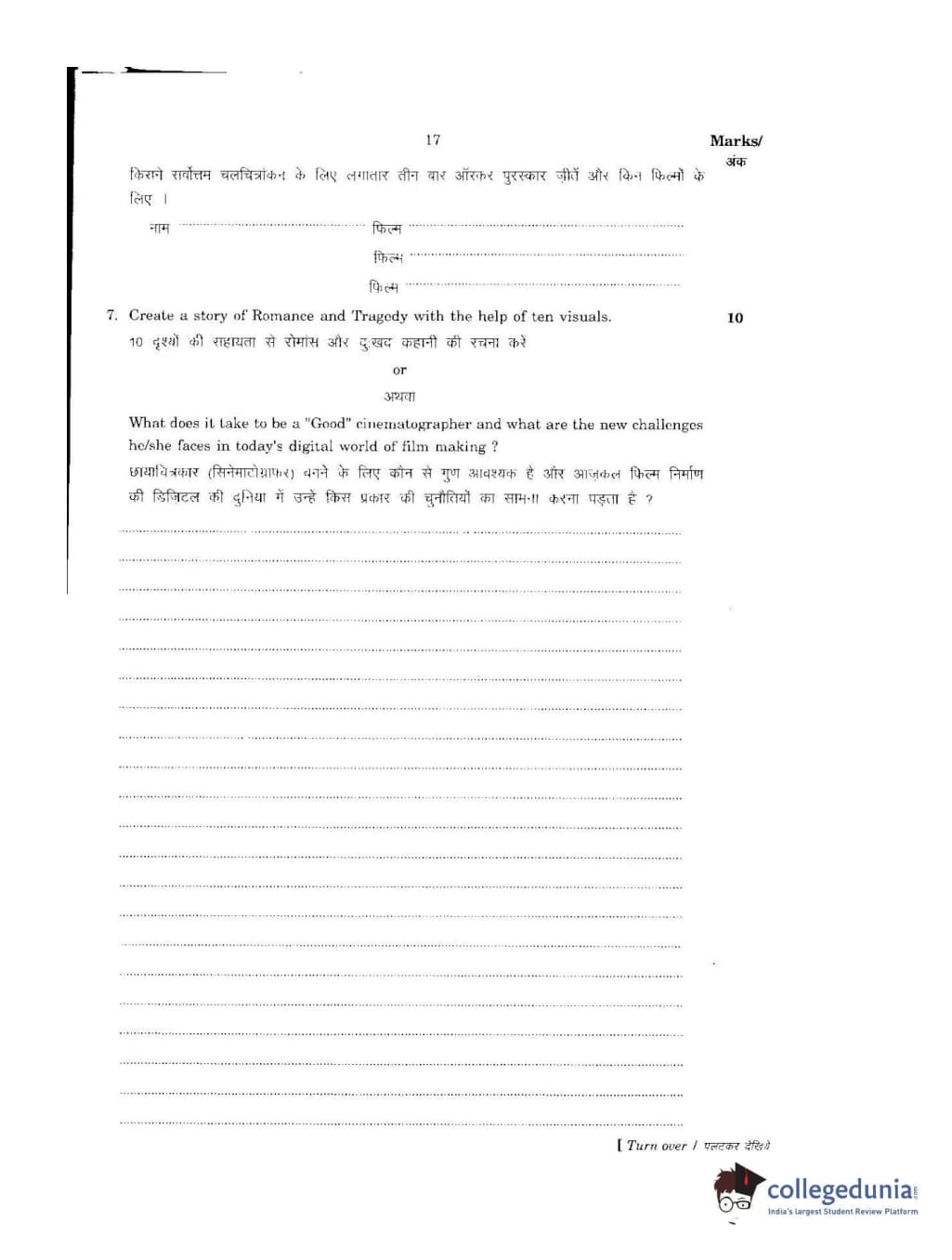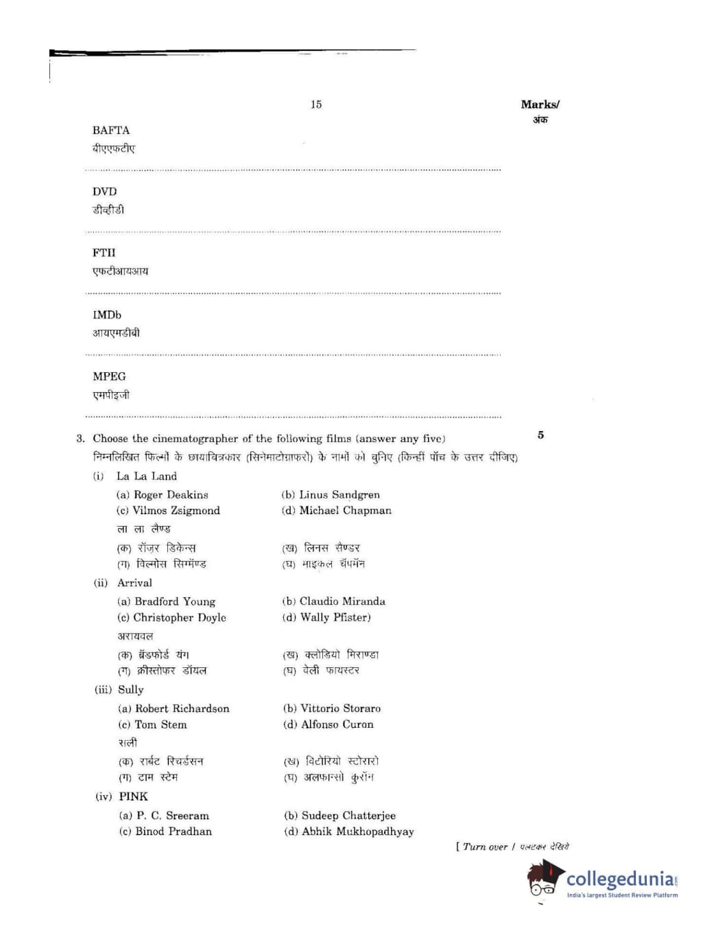 FTII Entrance Exam 2017 PG Diploma in Cinematography Question Paper with Answer Key PDFs