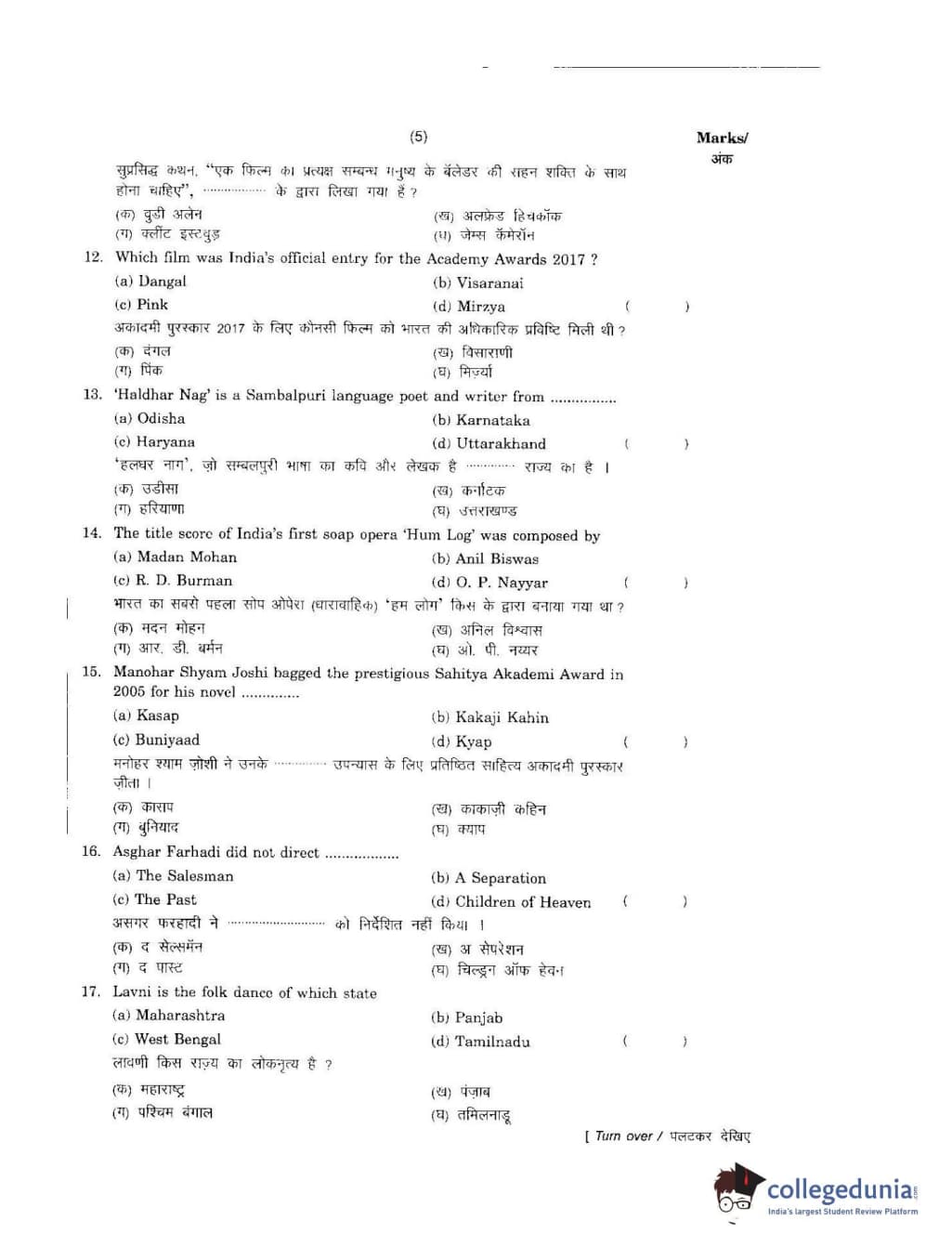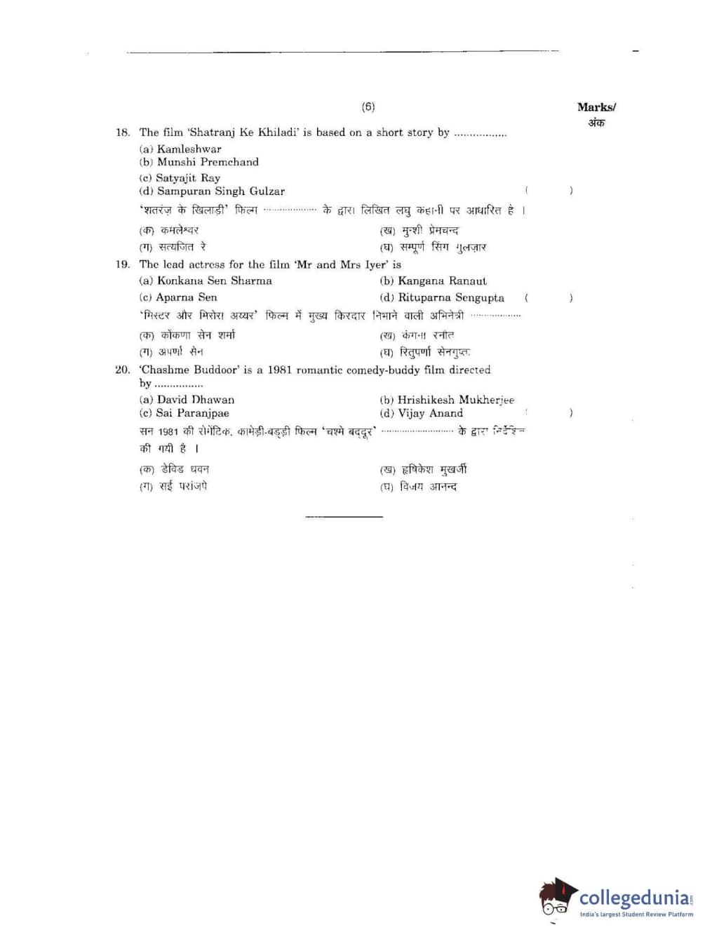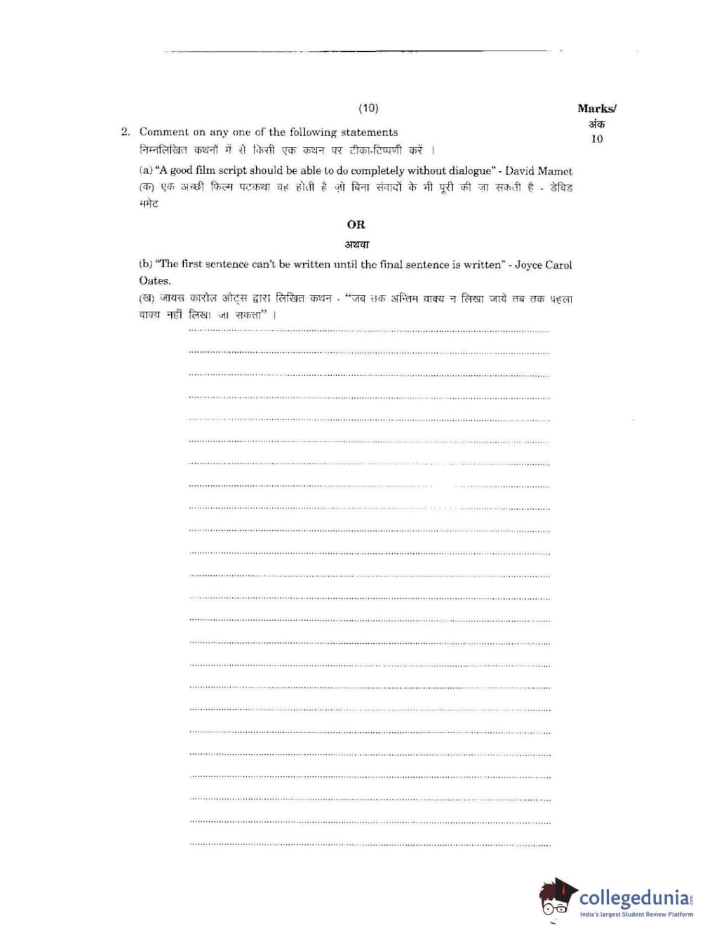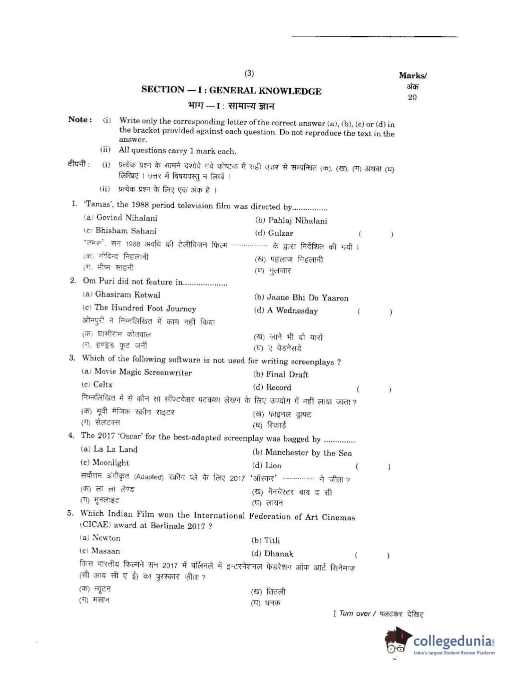 FTII Entrance Exam 2017 PG Diploma in Feature Film Screenplay Writing Question Paper with Answer Key PDFs