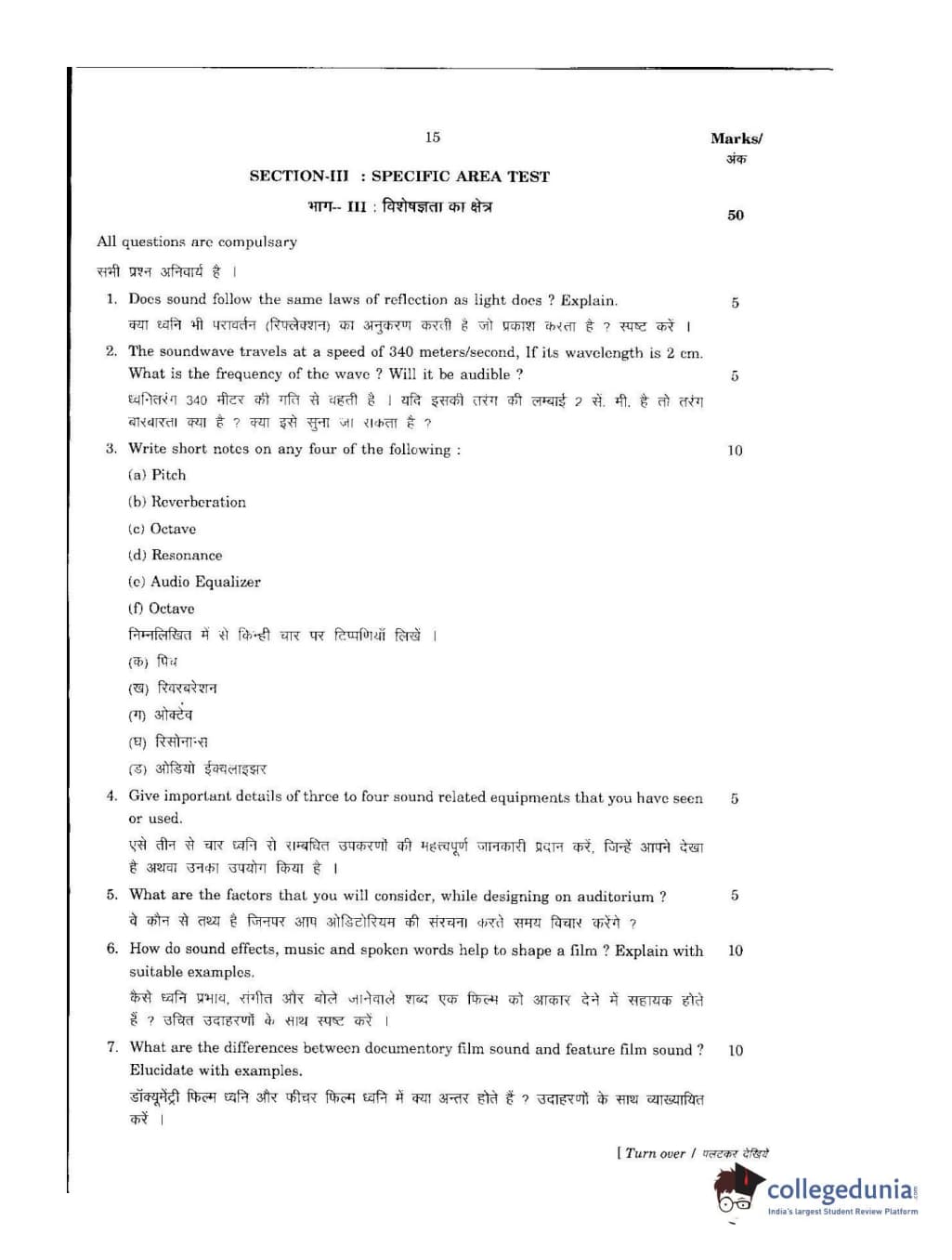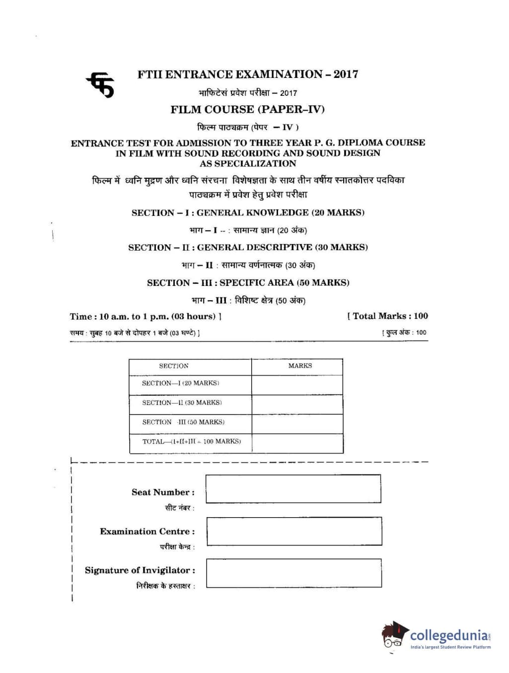 | FTII Entrance Exam 2017 PG Diploma in Sound Recording and Sound Design Question Paper PDF | FTII Entrance Exam 2017 PG Diploma in Sound Recording and Sound Design Answer Key PDF |