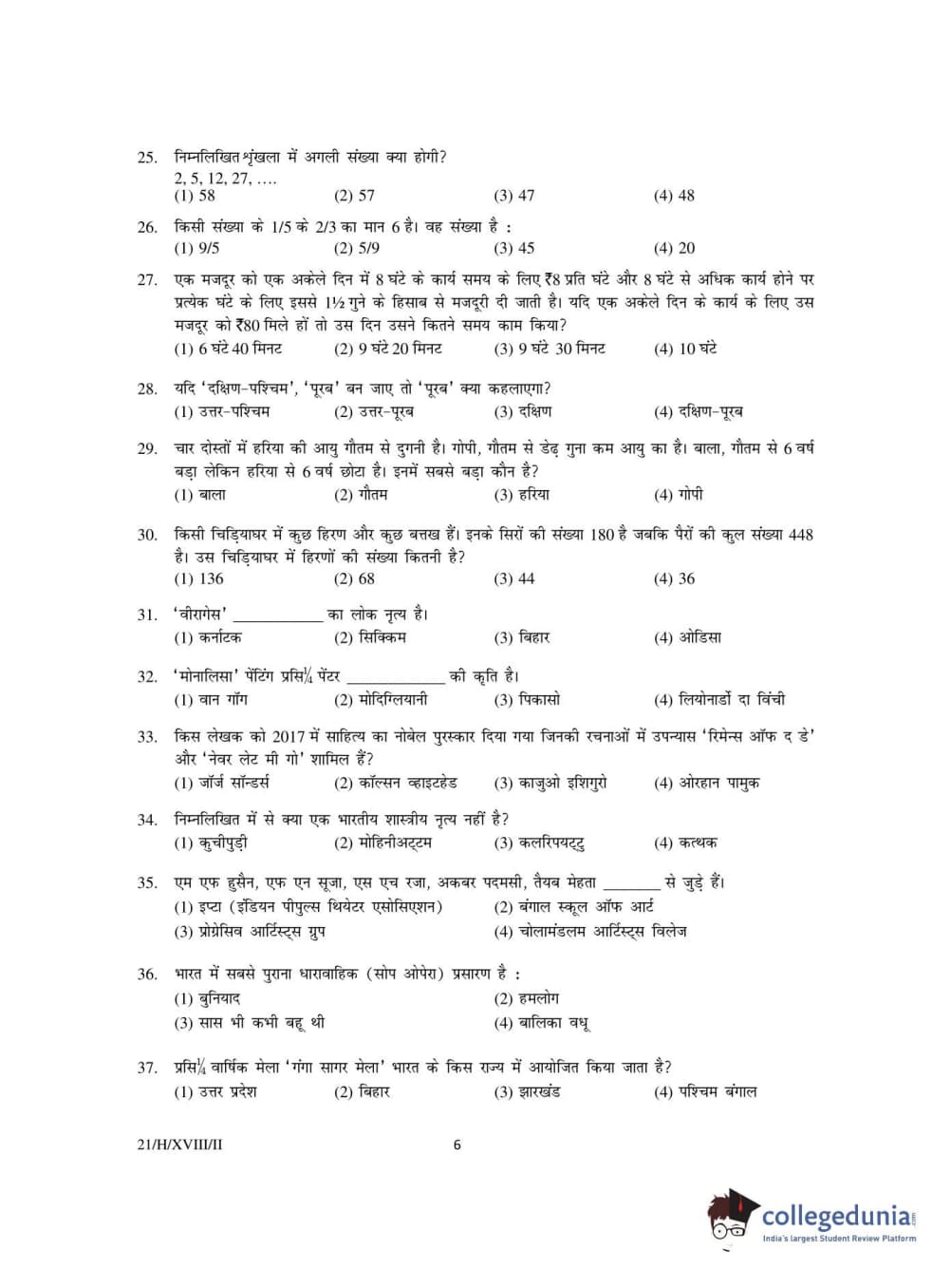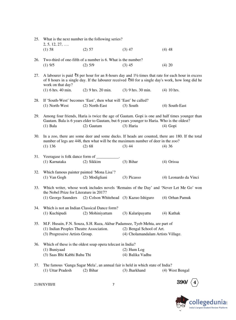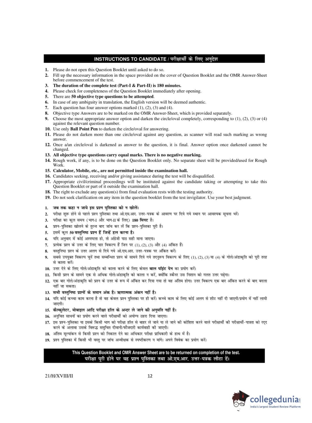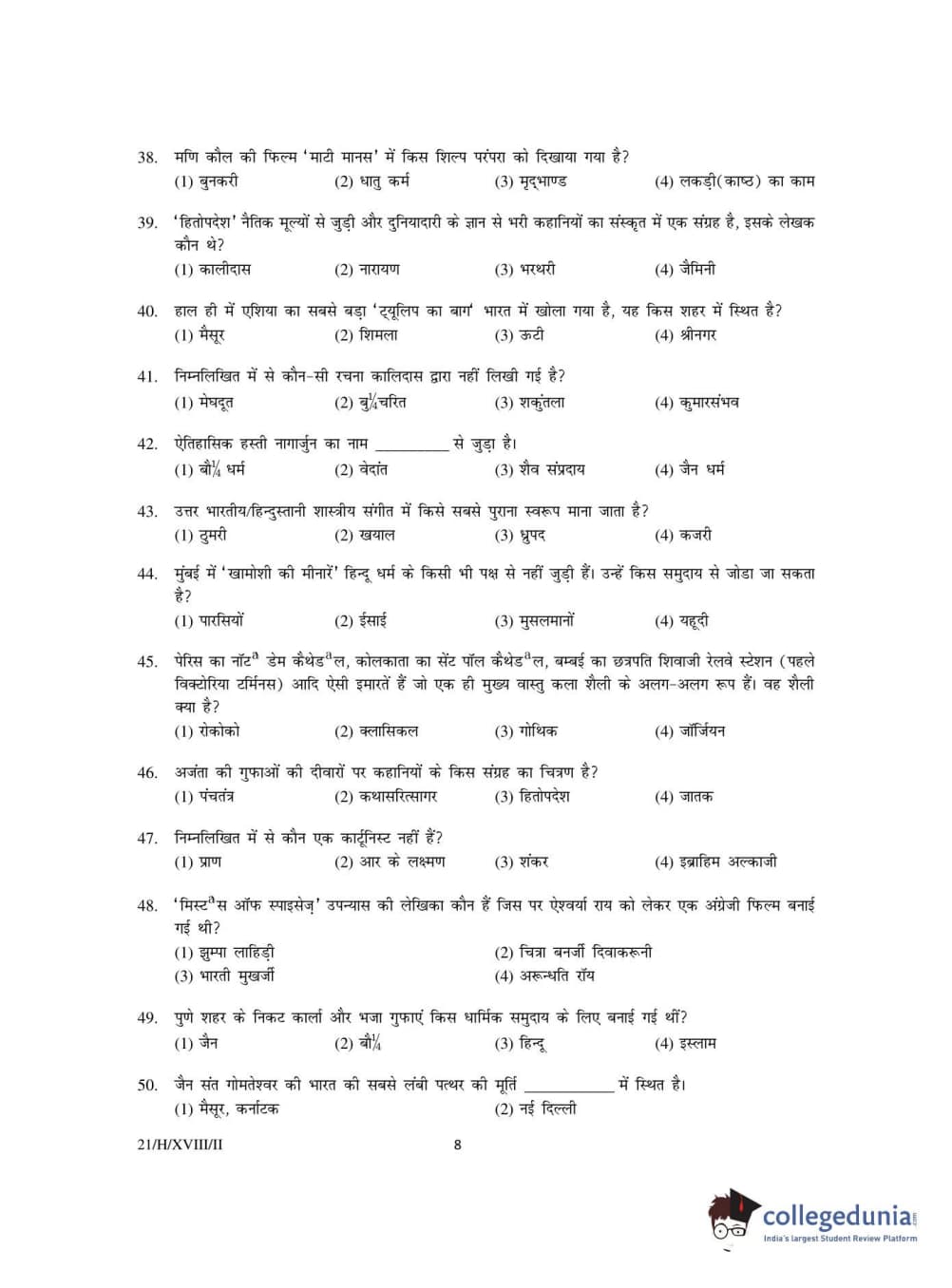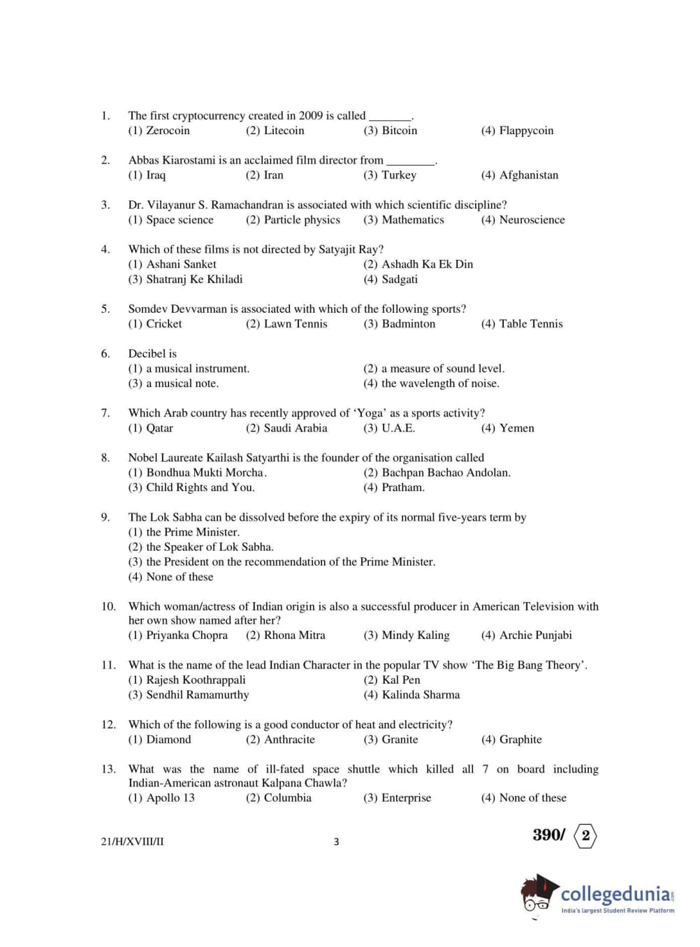 FTII Entrance Exam 2018 Part 1 Code H Question Paper with Answer Key PDFs