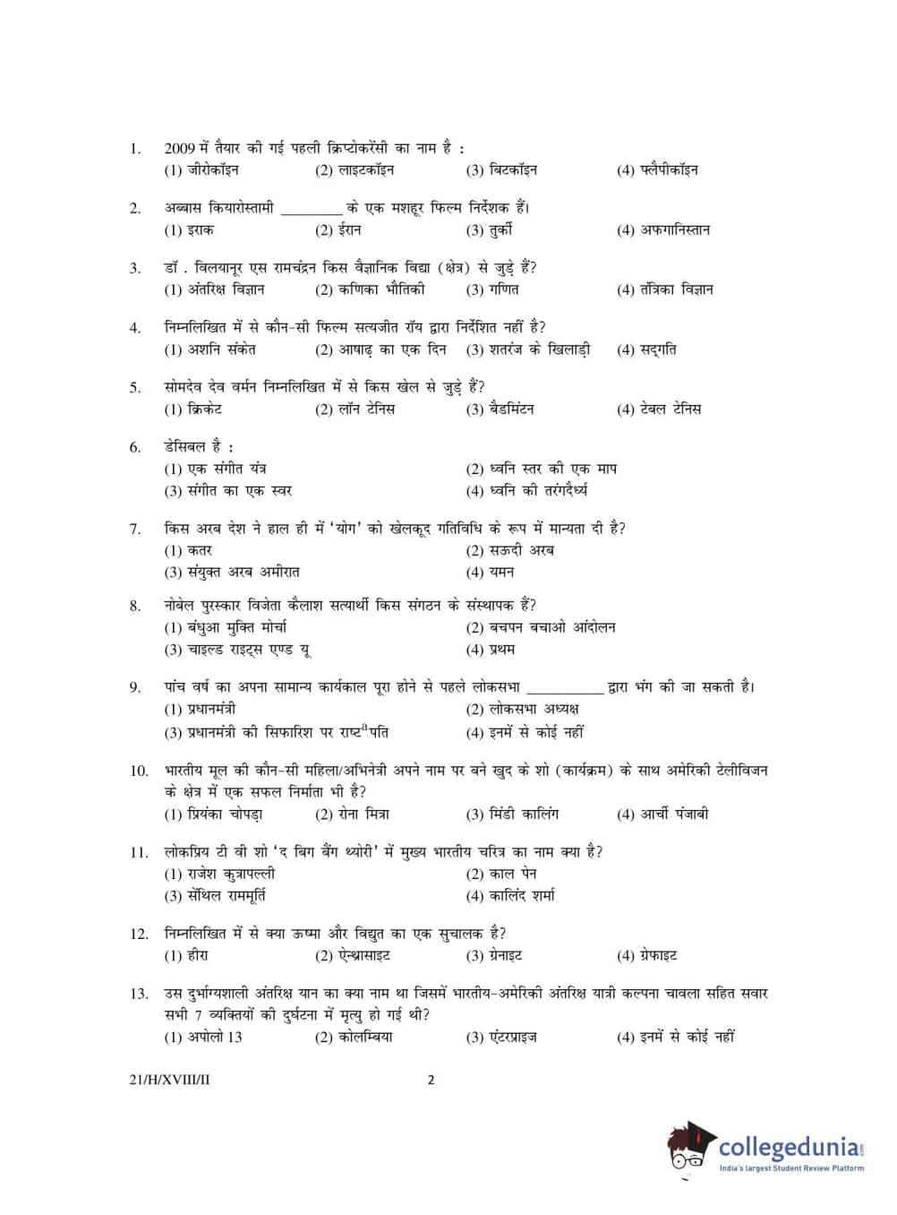 FTII Entrance Exam 2018 Part 1 Code H Question paper with answer key pdf conducted on February 18, 2018 is available for download. The exam was successfully organized by Film and Television Institute of India (FTII). The question paper comprised a total of 50 questions.