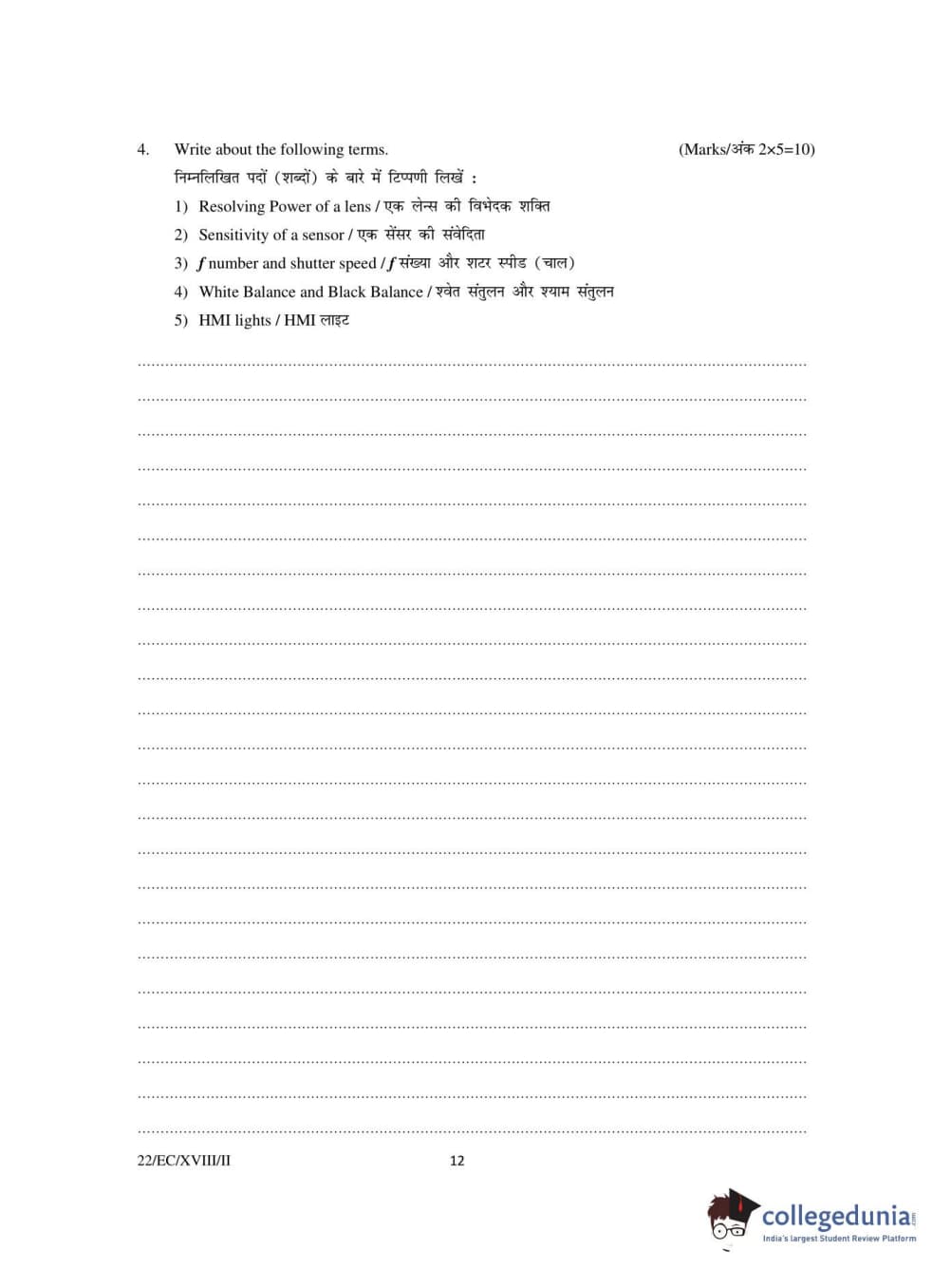 FTII Entrance Exam 2018 PG Certificate Course in Electronic Cinematography Question Paper with Answer Key PDFs