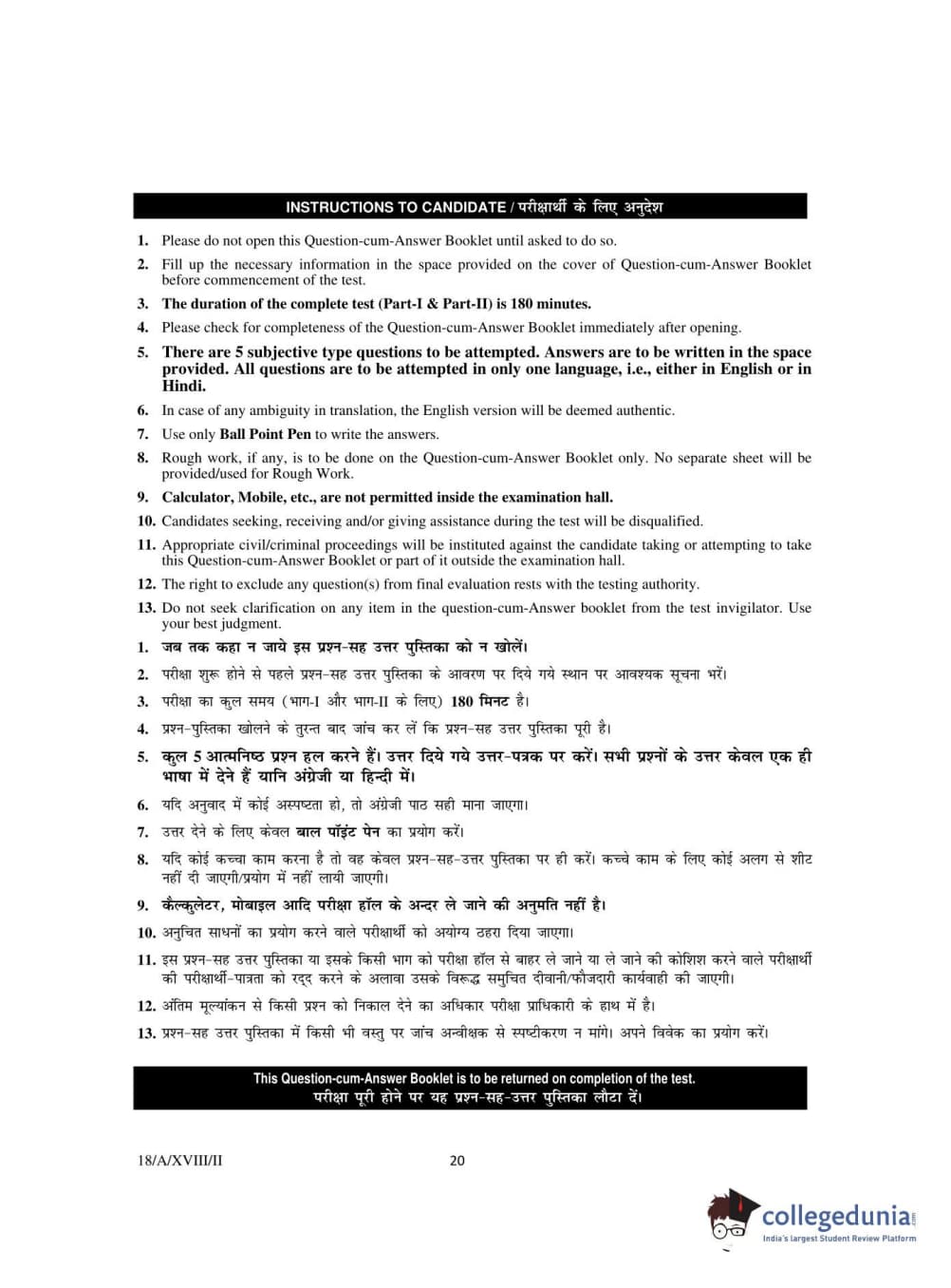 FTII Entrance Exam 2018 PG Diploma in Acting Question Paper with Answer Key PDFs
