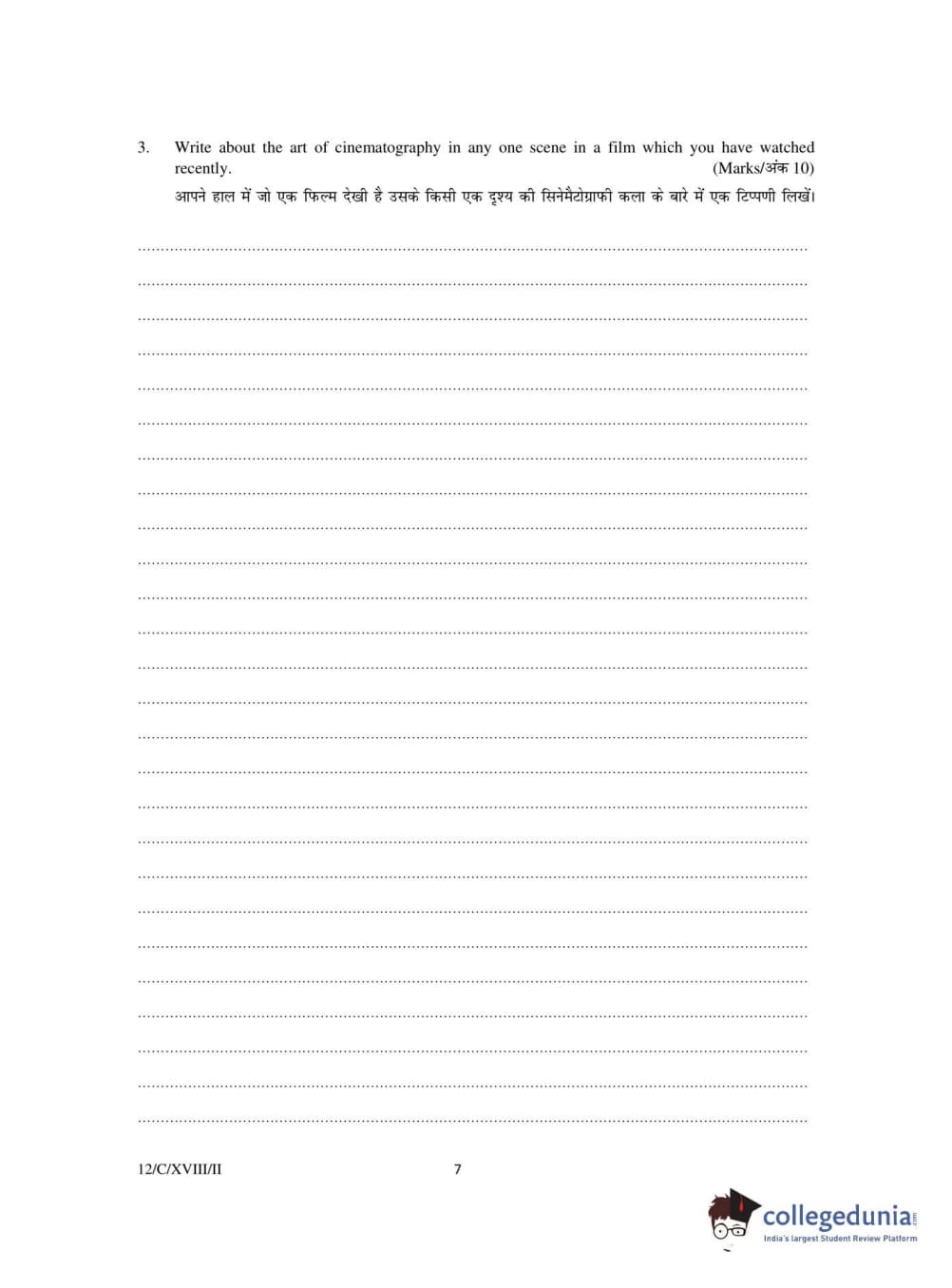 FTII Entrance Exam 2018 PG Diploma in Cinematography Question Paper with Answer Key PDFs