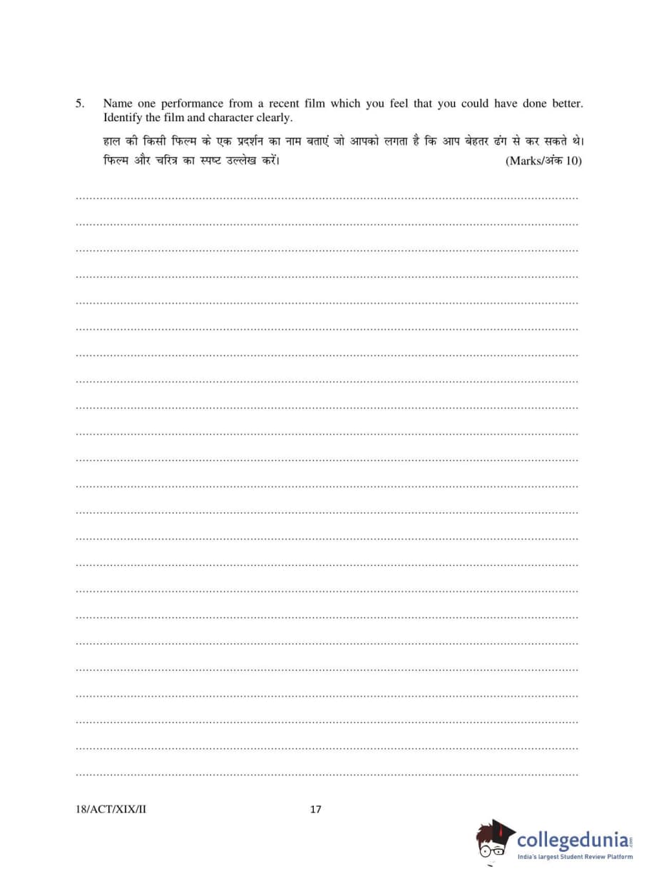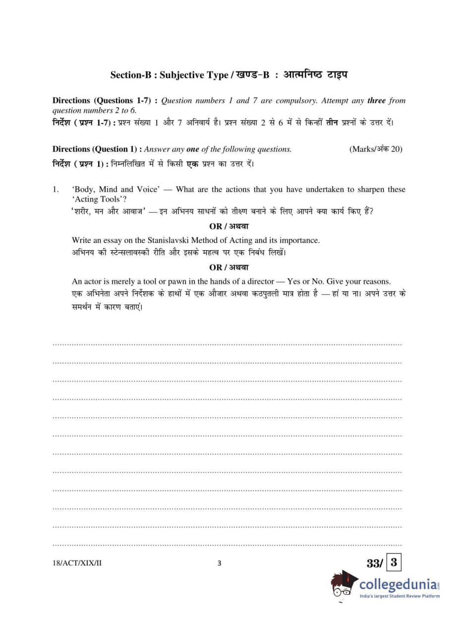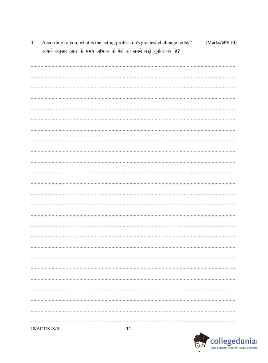 FTII Entrance Exam 2019 PG Diploma in Acting Question Paper with Answer Key PDFs