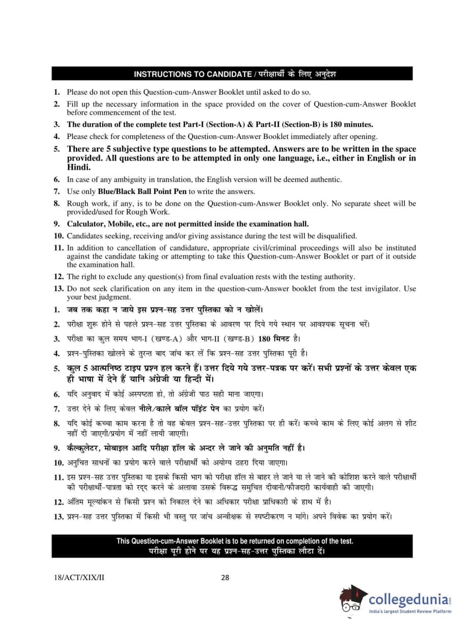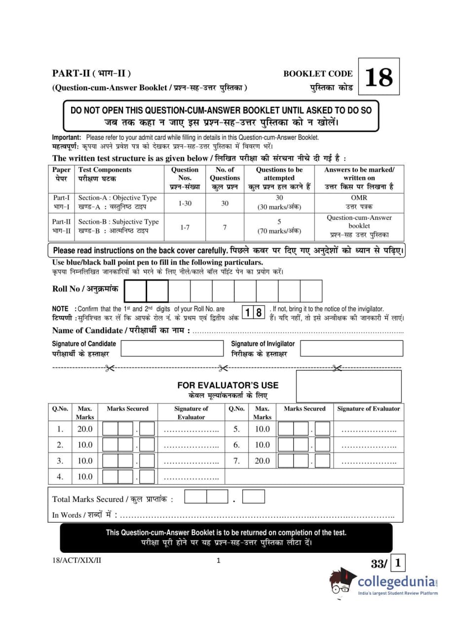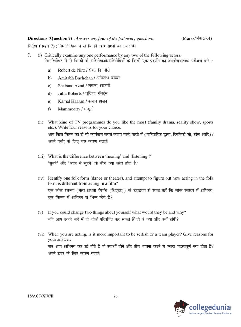 FTII Entrance Exam 2019 PG Diploma in Acting Question Paper with Answer Key PDFs
