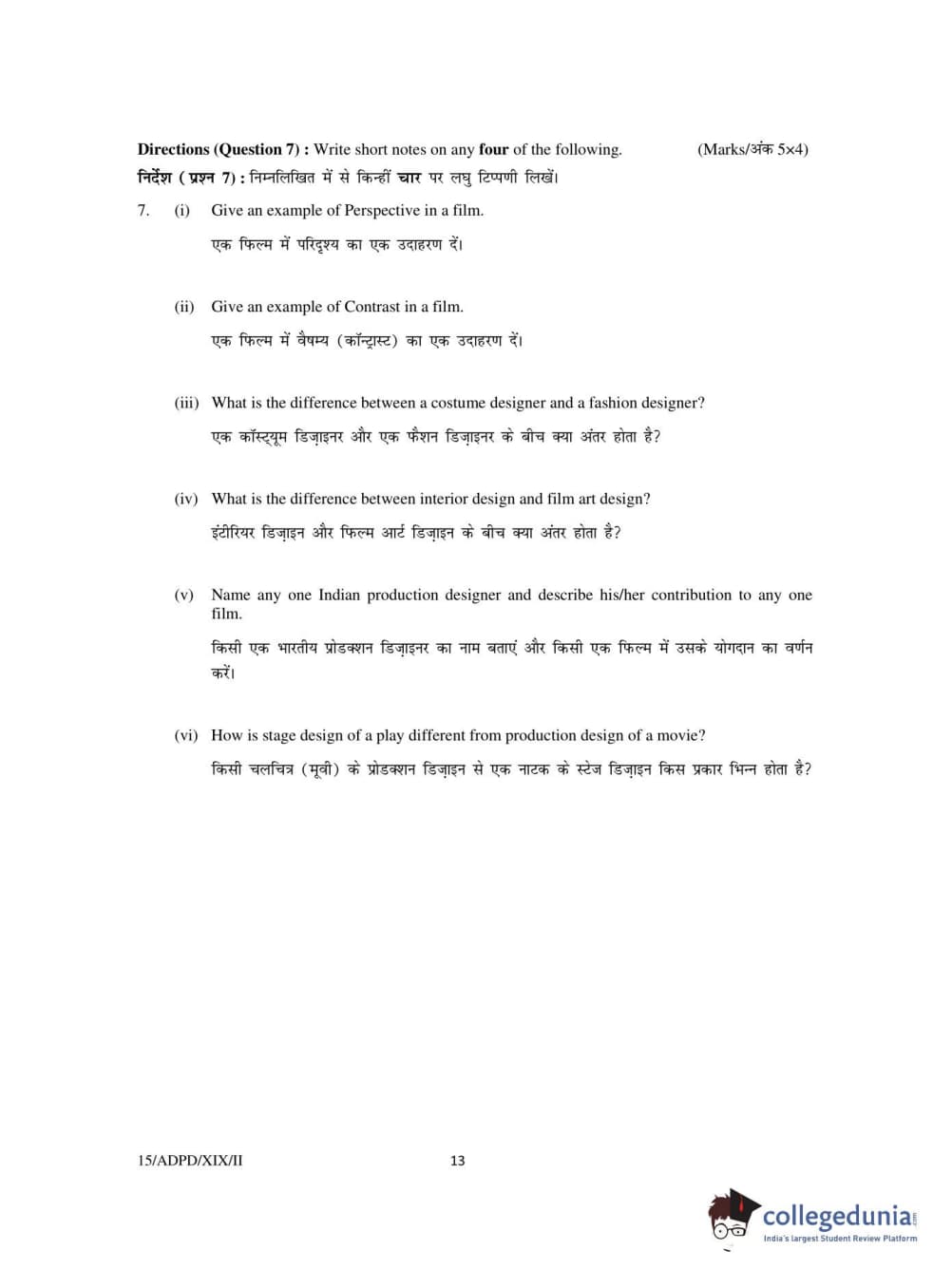 FTII Entrance Exam 2019 Three Year Post Graduate Diploma in Art Direction and Production Design Question paper with answer key pdf conducted on February 24, 2019 is available for download. The exam was successfully organized by Film and Television Institute of India (FTII). The question paper comprised a total of 7 questions.