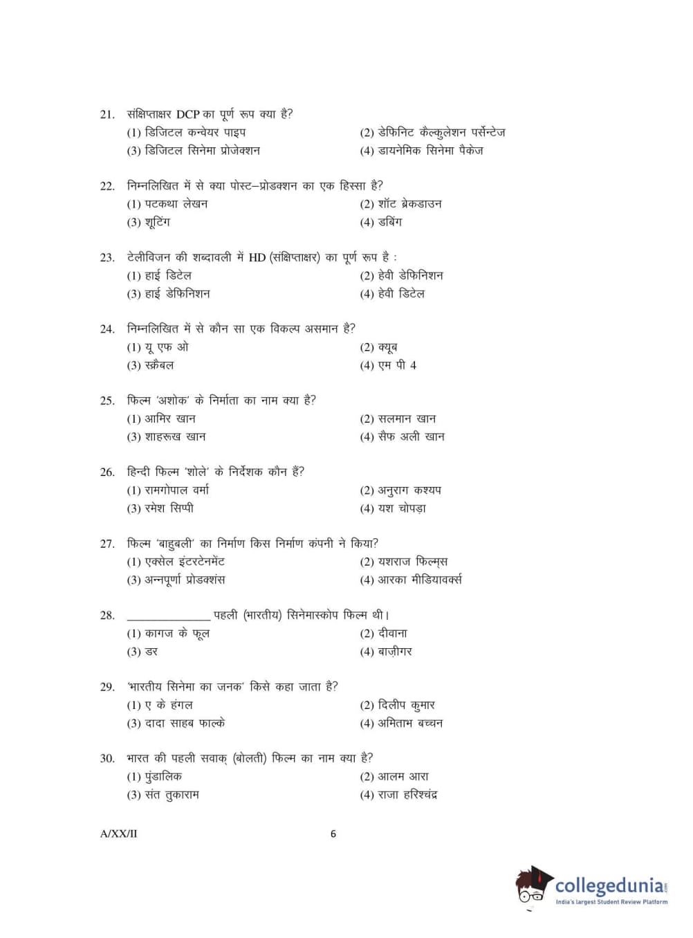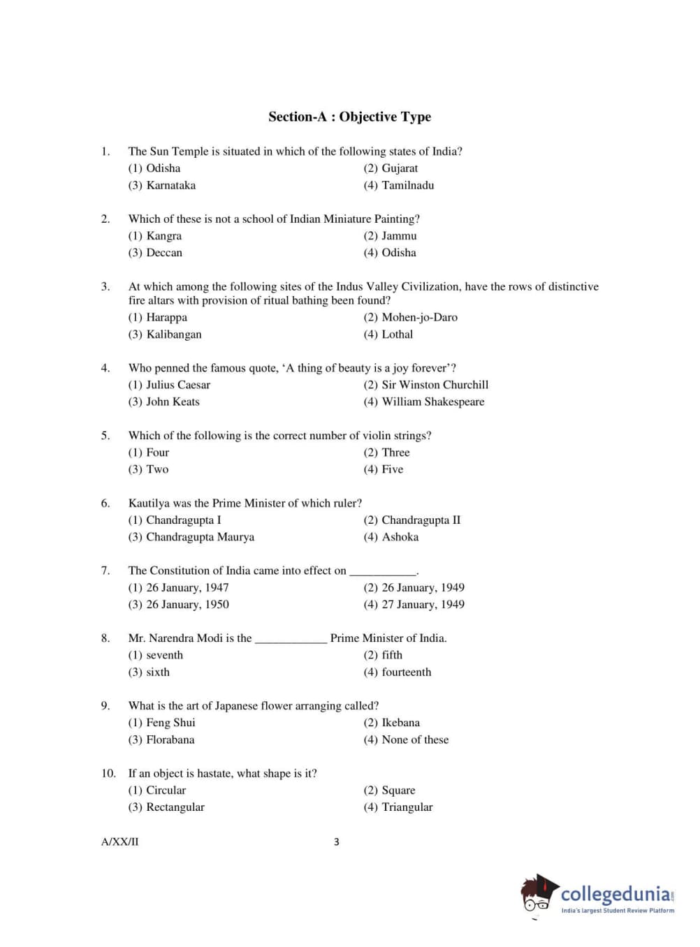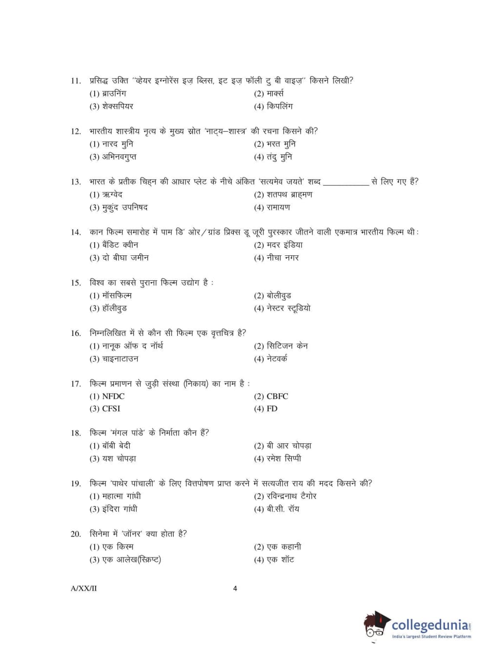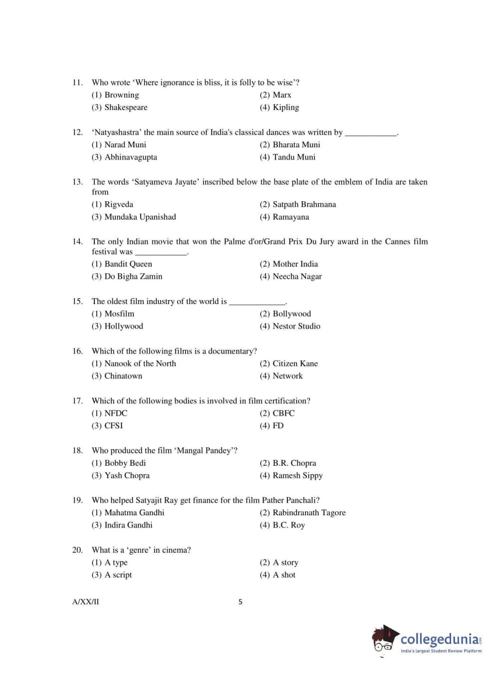 FTII Entrance Exam 2020 Common Objective Paper Part-I A Question Paper with Answer Key PDFs