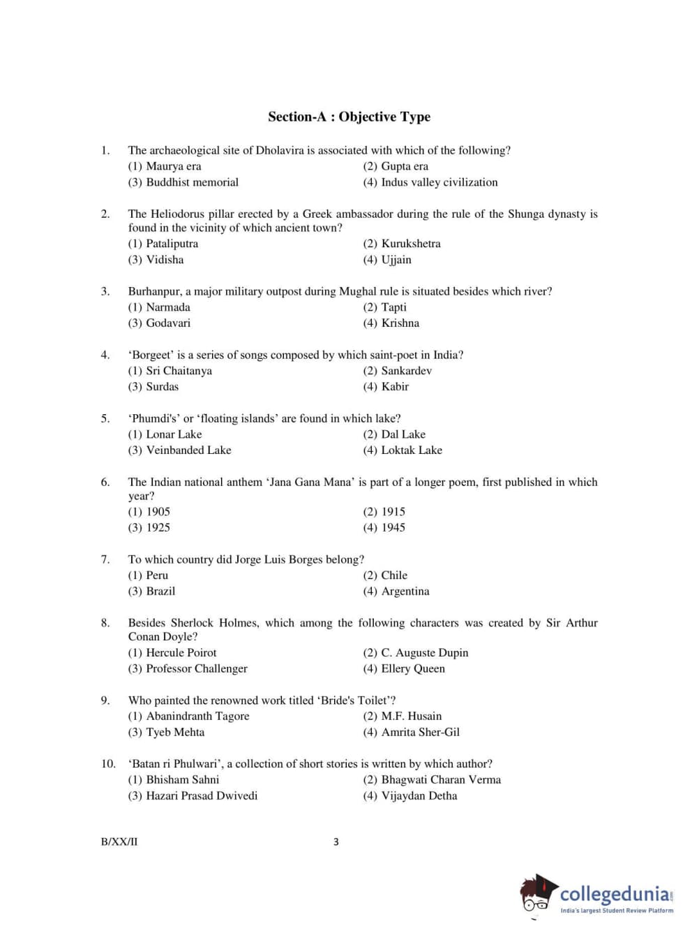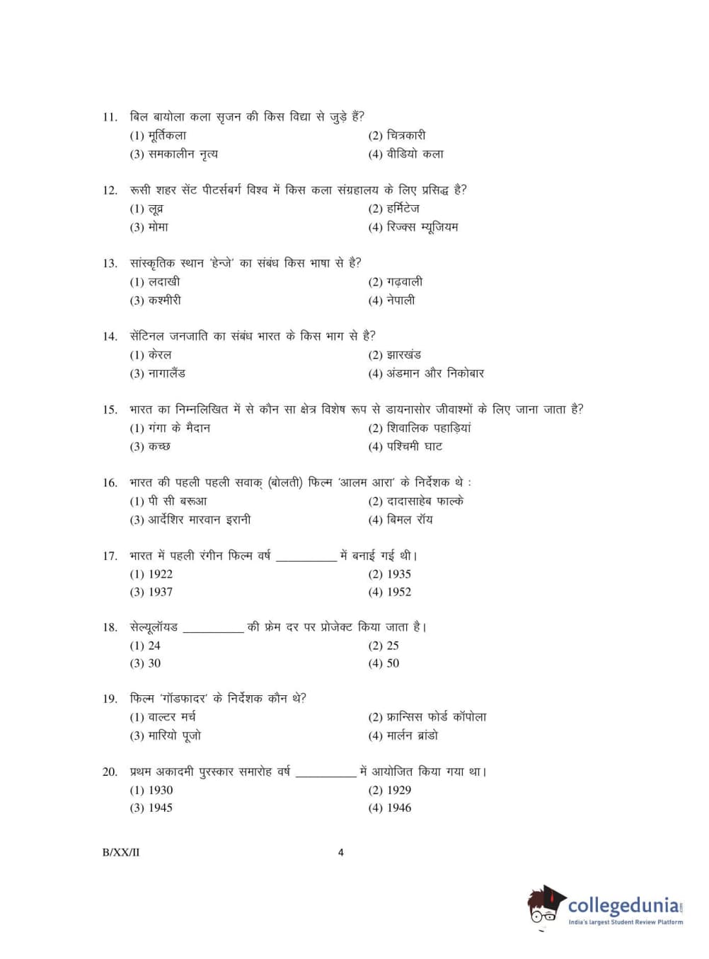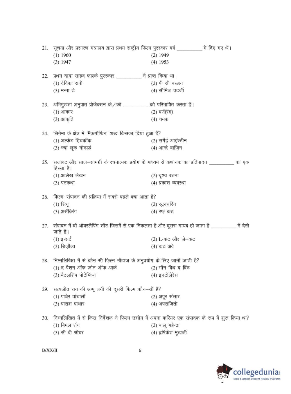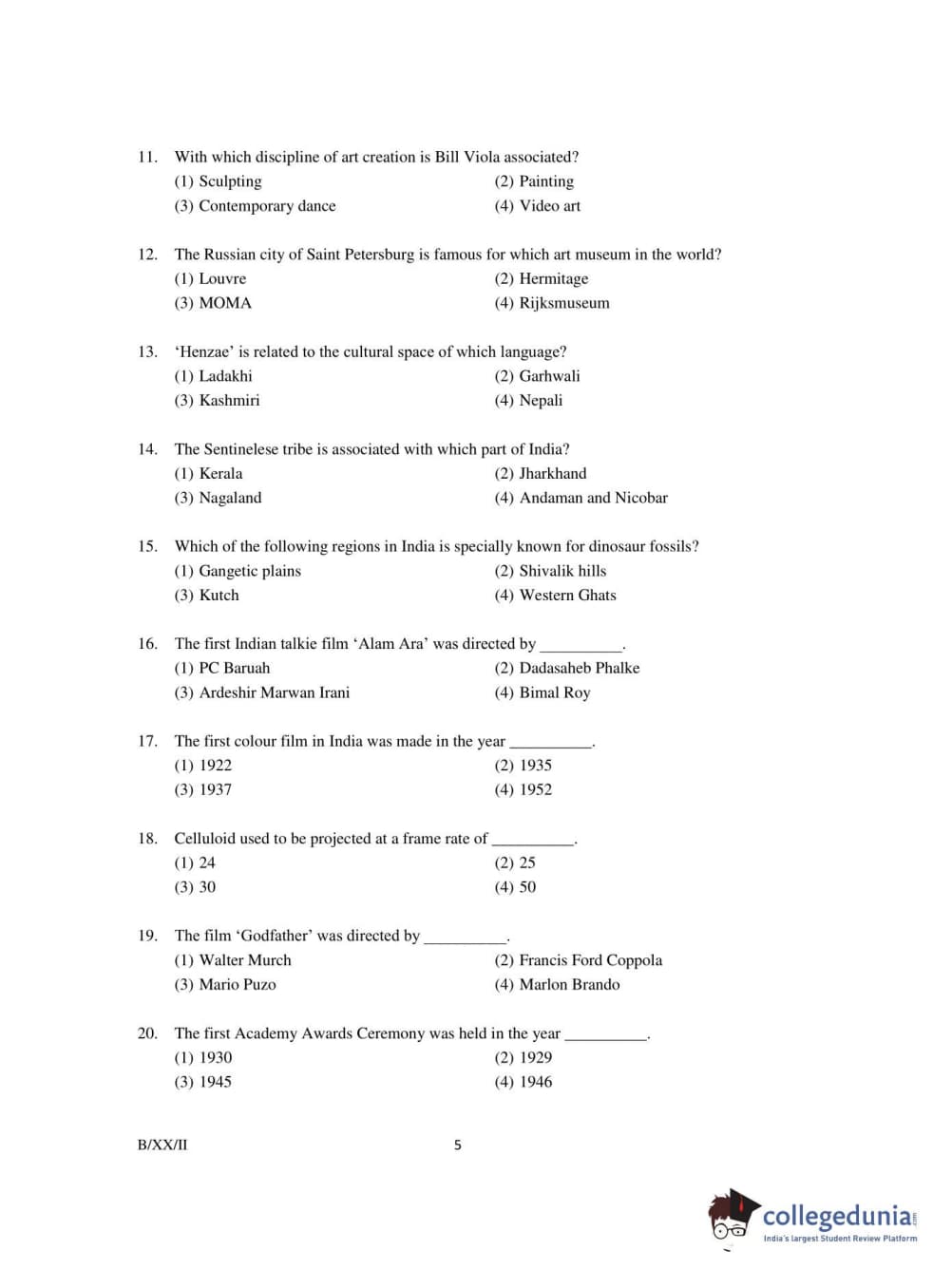 FTII Entrance Exam 2020 Common Objective Paper Part-I B Question Paper with Answer Key PDFs