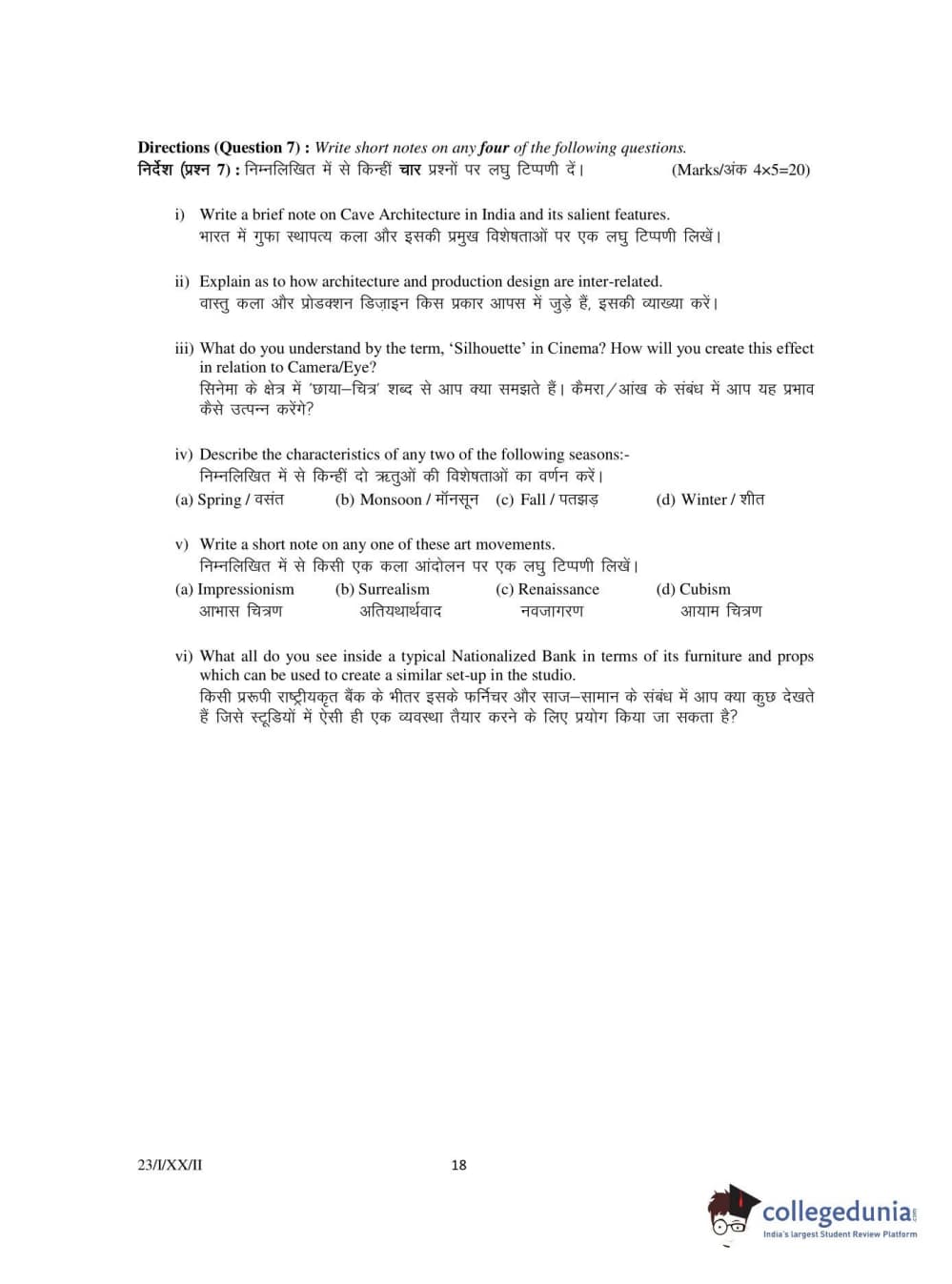 FTII Entrance Exam 2020 Three Year Post Graduate Diploma in Art Direction and Production Design Question paper with answer key pdf is available for download. The exam was successfully organized by Satyajit Ray Film & Television Institute, Kolkata (SRFTI). The question paper comprised a total of 7 questions.