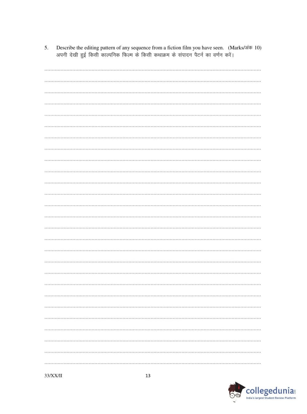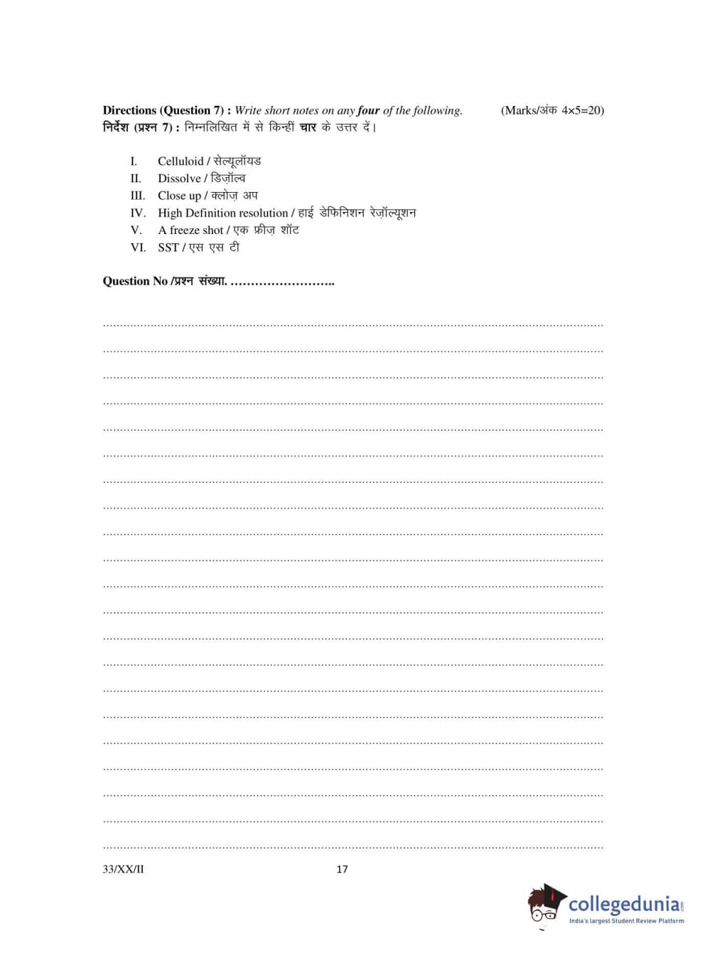FTII Entrance Exam 2020 PG Diploma in Editing Question Paper with Answer Key PDFs