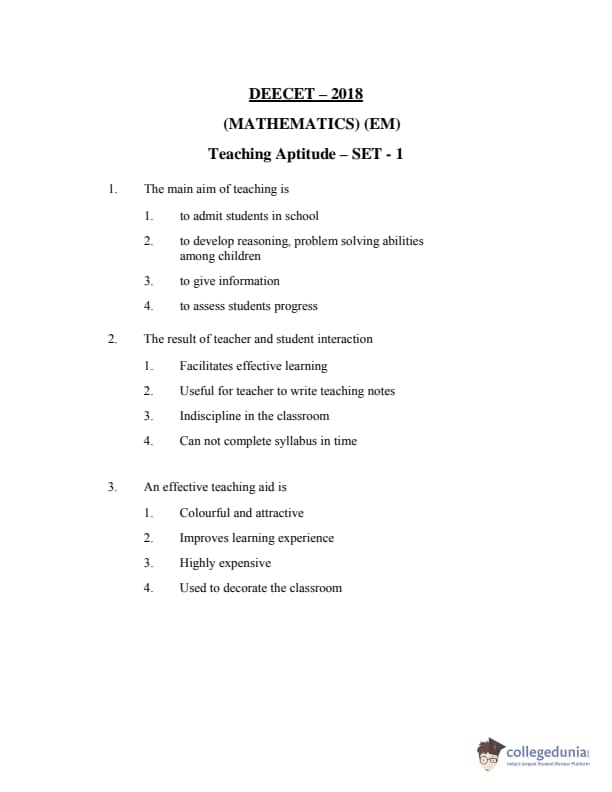 AP DEECET 2018 Mathematics Question paper with answer key pdf is available for download. The exam was successfully organized by Directorate of School Education, Government of AP. The question paper comprised a total of 100 questions.