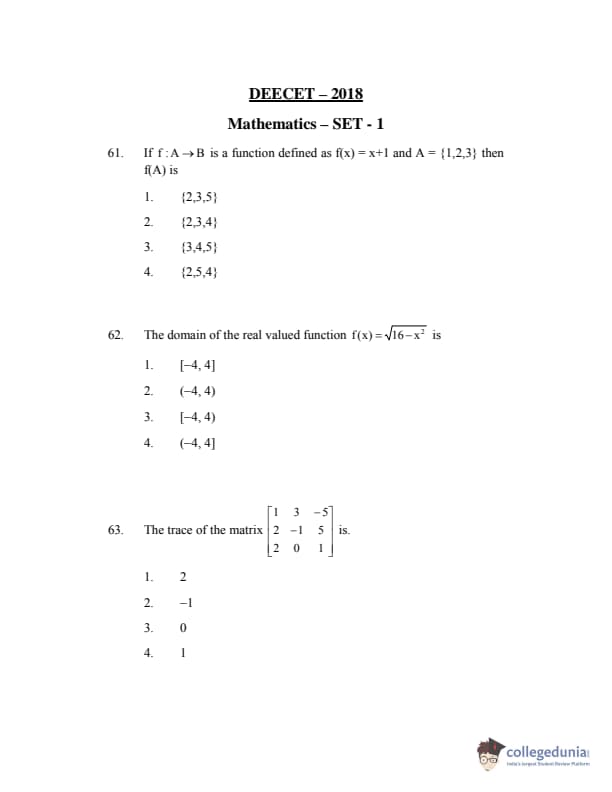| AP DEECET 2018 Mathematics Question Paper PDF | AP DEECET 2018 Mathematics Answer Key PDF |