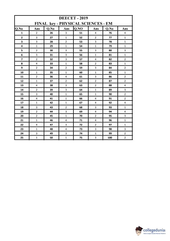 | AP DEECET 2019 Physical Science Question Paper PDF | AP DEECET 2019 Physical Science Answer Key PDF |