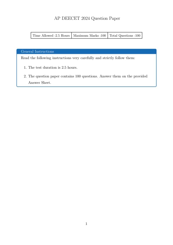 | AP DEECET 2024 Question Paper with Answer Key | Download PDF | Check Solution |